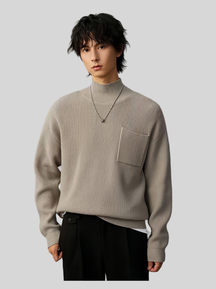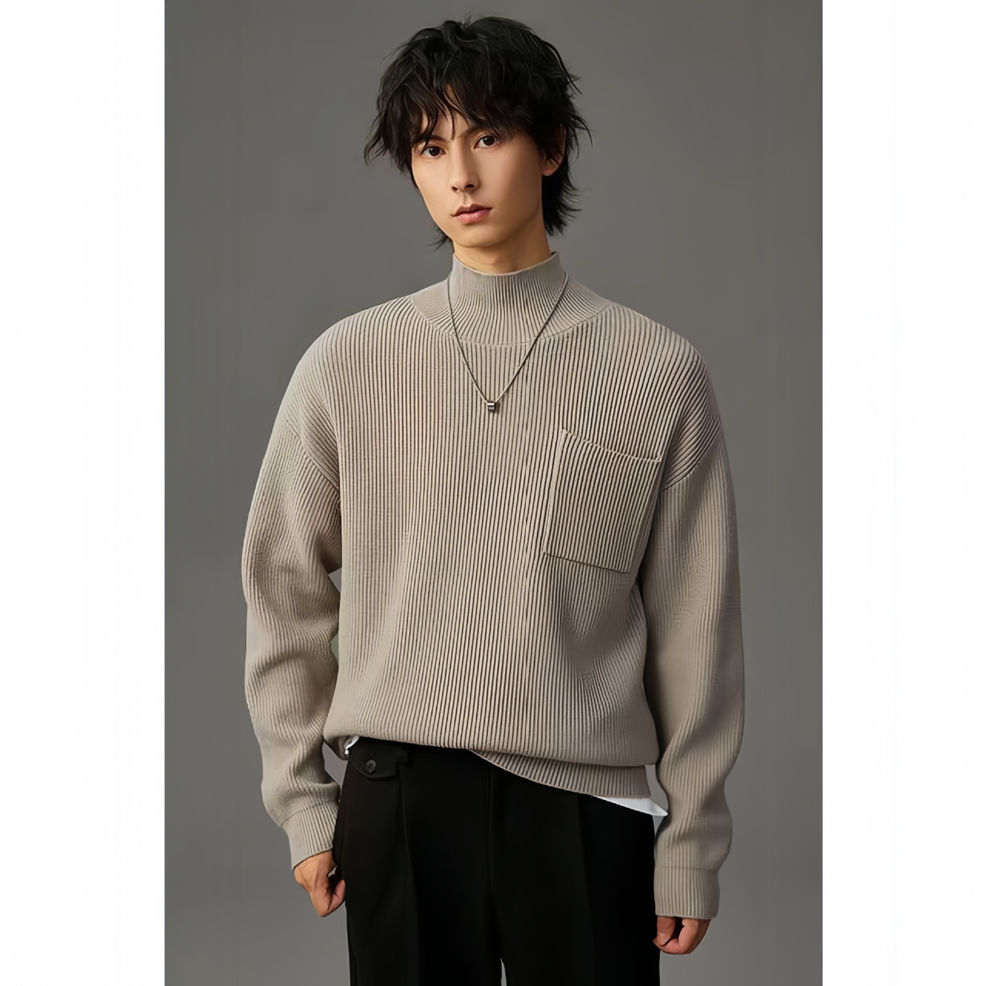 Главная страница > 2024 новый высокий воротник тяжелый свитер 480G мужской дикий молодежный вязаный свитер