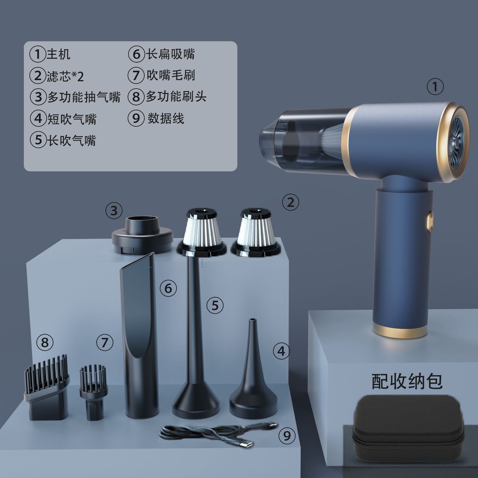 Черно-золотая модель Supreme [2 фильтра + авиационная сумка + щетка для пола]