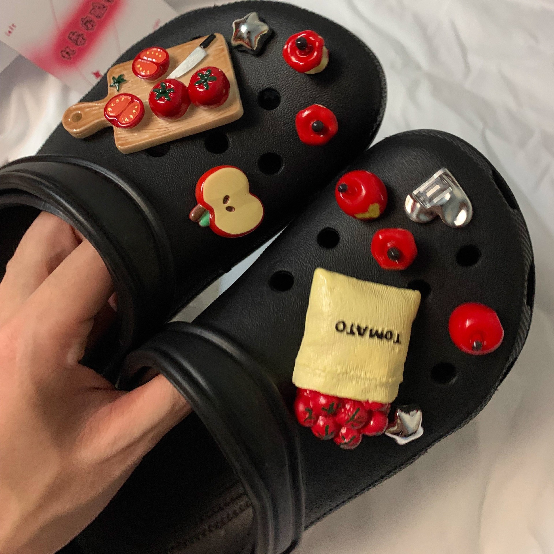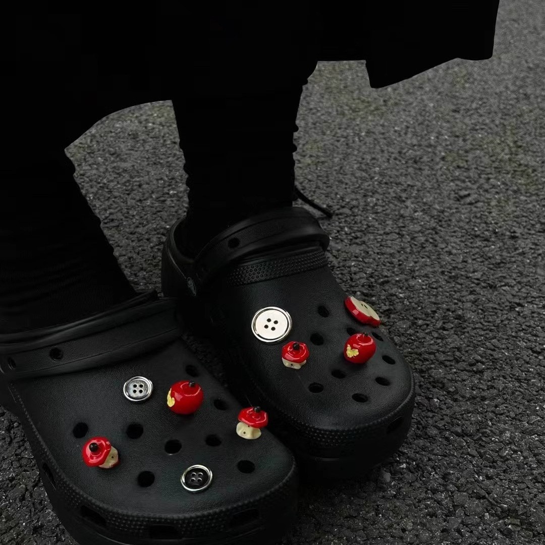 Обувь с дырочкой и обувной пряжкой подходит для аксессуаров.