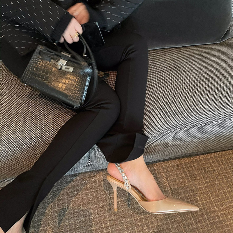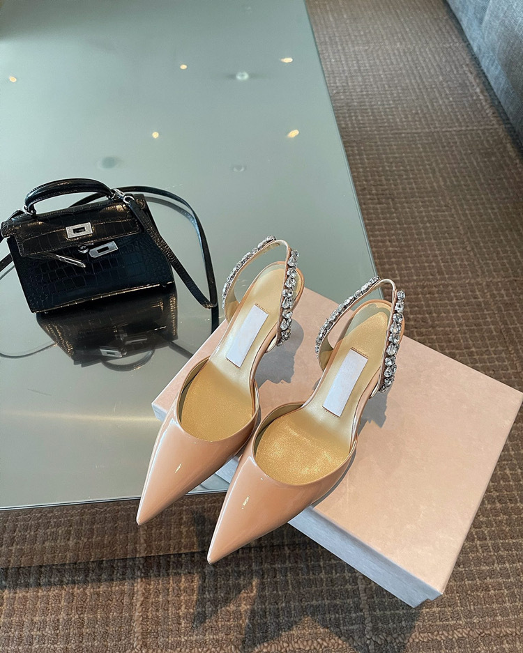 Главная страница > Весна и лето 2024, новые босоножки телесного цвета с острым носком и стразами на спине, французские светские туфли на высоком каблуке, женские туфли на шпильке