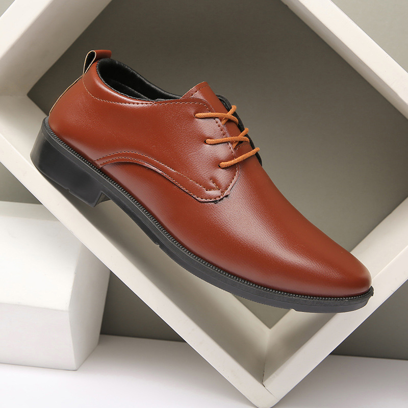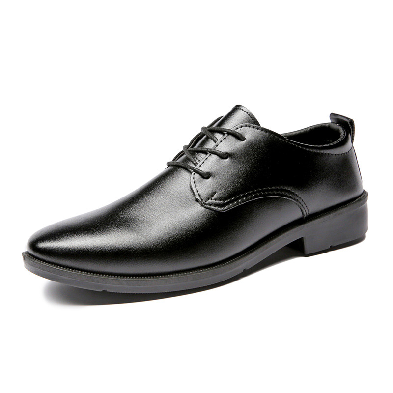 Главная страница > Бизнес-кожаная обувь мужская черная повседневная рабочая обувь простая и модная свадебная обувь лучшего человека, дикая шнуровка мягкая подошва нескользящая мужская обувь