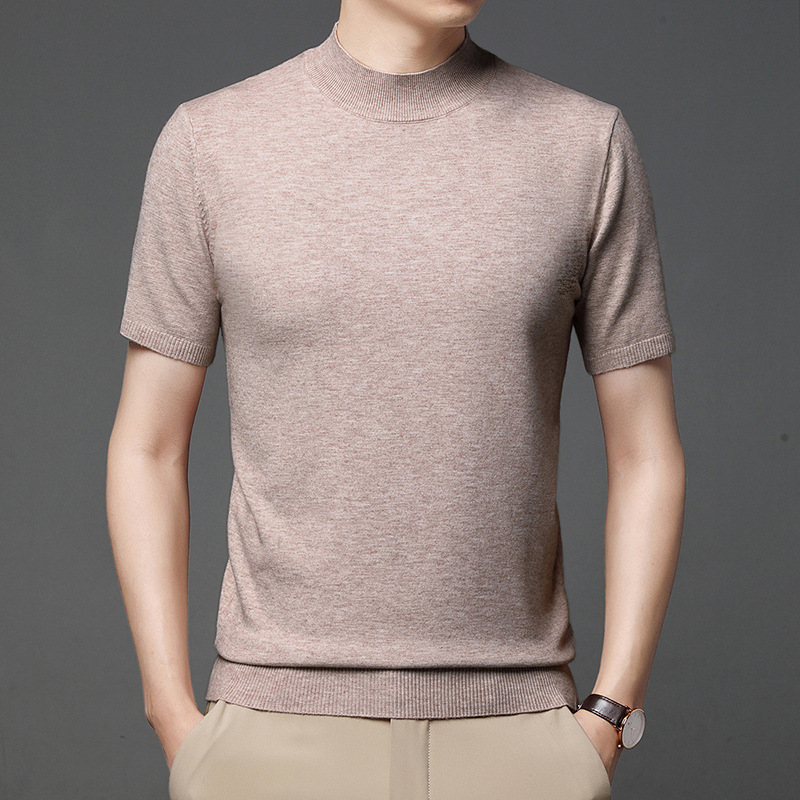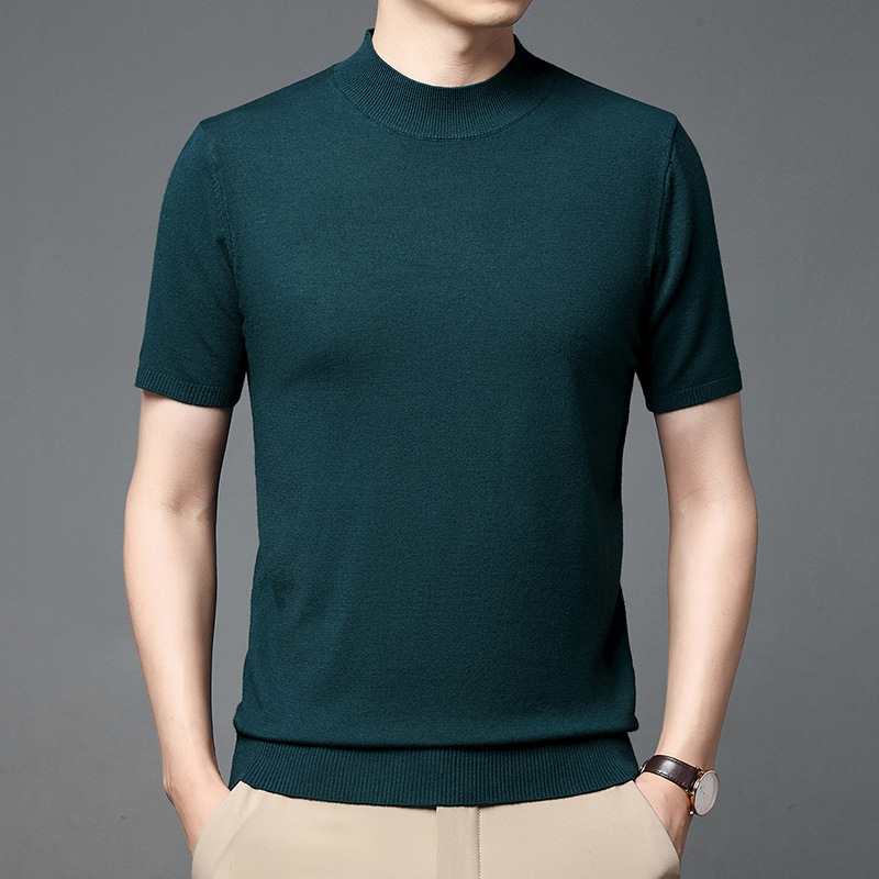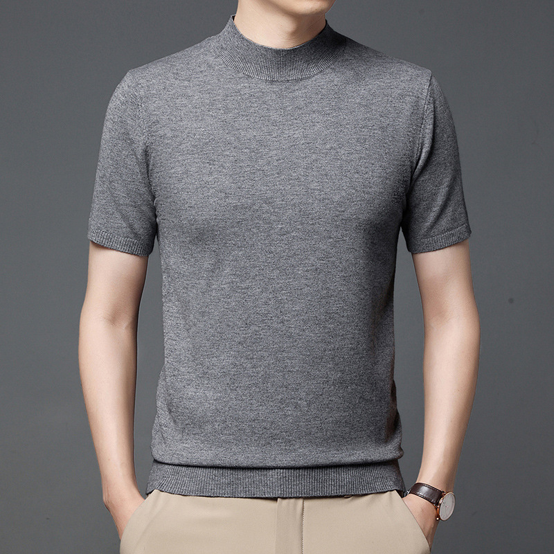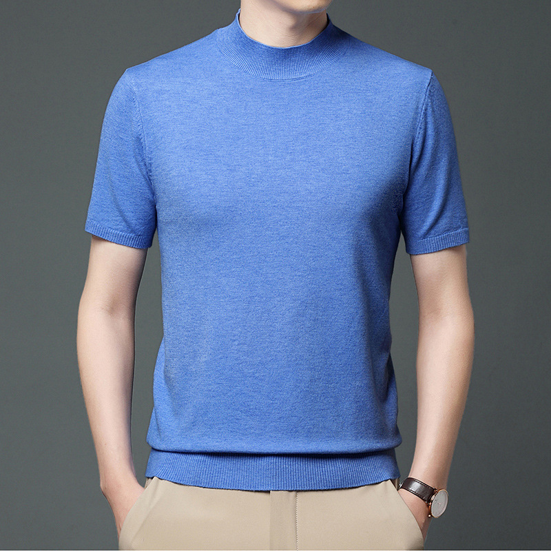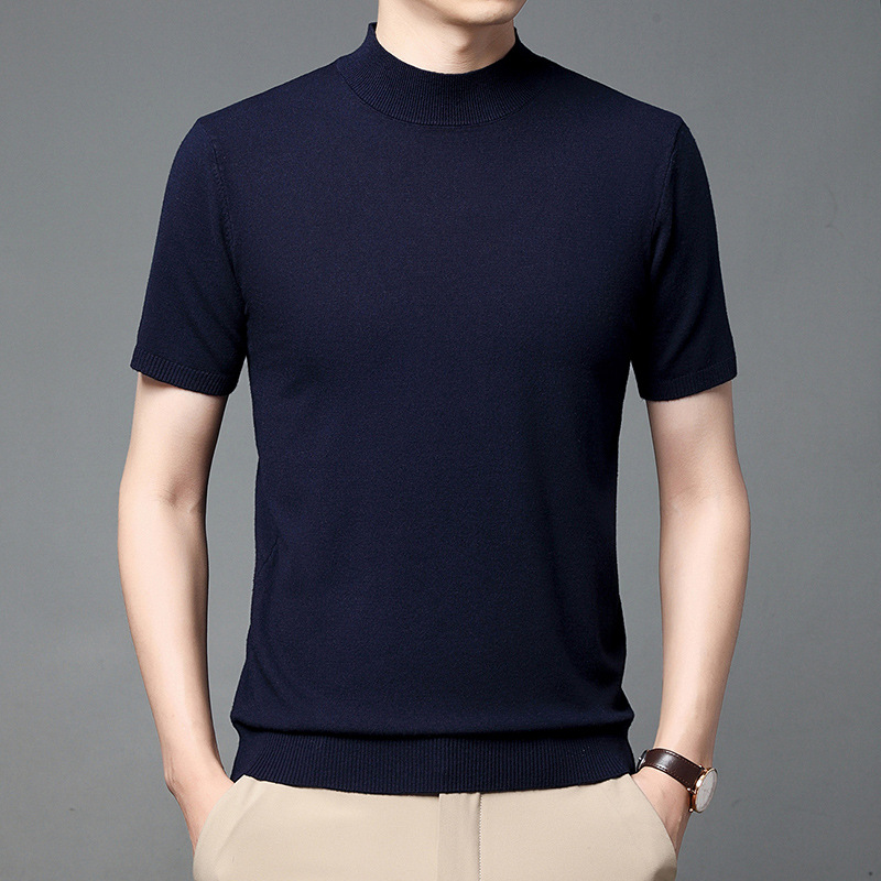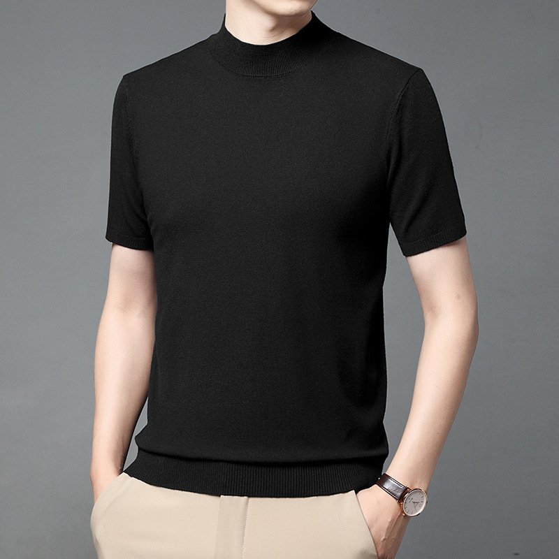 Главная страница > Мужская трикотажная водолазка с короткими рукавами 2023 года, весна-лето, новая однотонная мужская Повседневная рубашка с низом для молодых и средних лет
