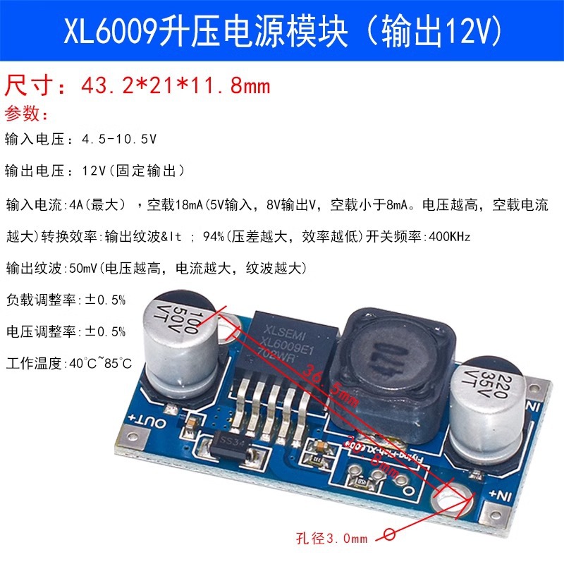 XL6009 DC-DC регулятор питания питания регулируемый выход 5V/6/9/12V литр 24V с цифровым дисплеем 4A