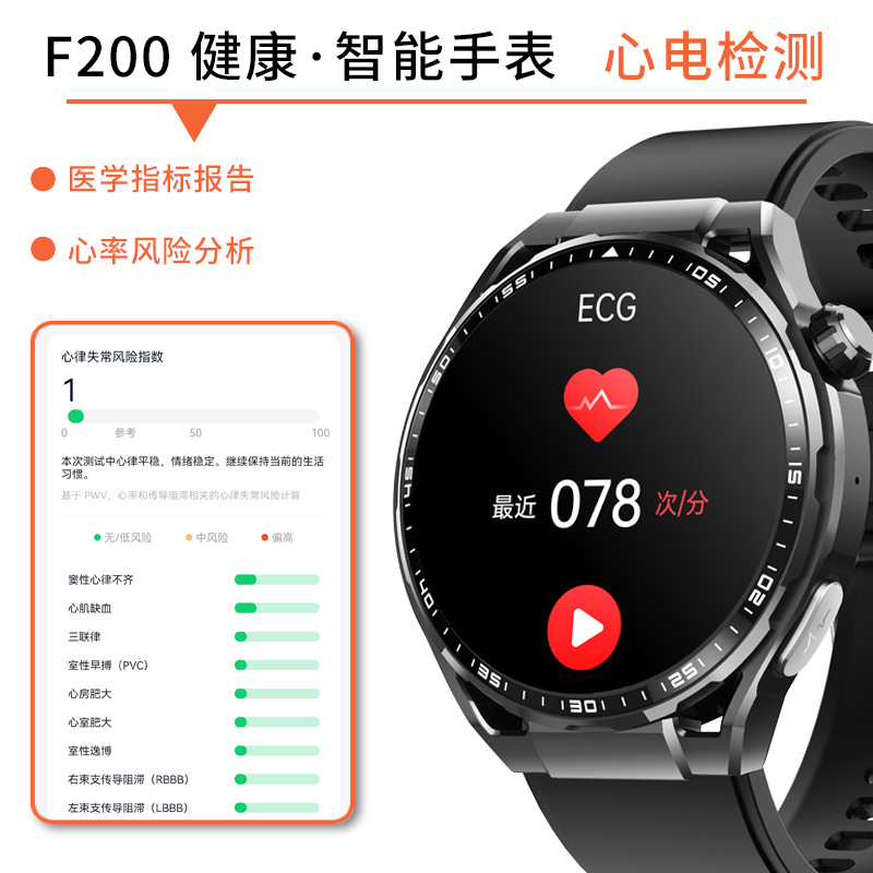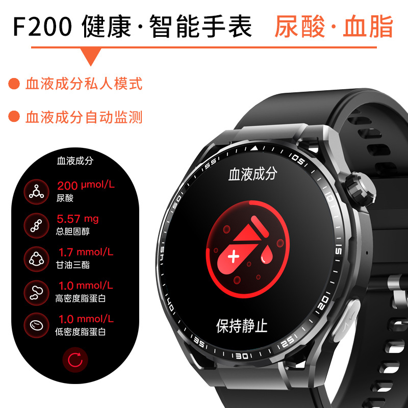 Главная страница > F200 мужские часы многофункциональный круглый экран измерение сахара в крови липиды в крови ЭКГ спортивные часы Bluetooth вызов умные часы