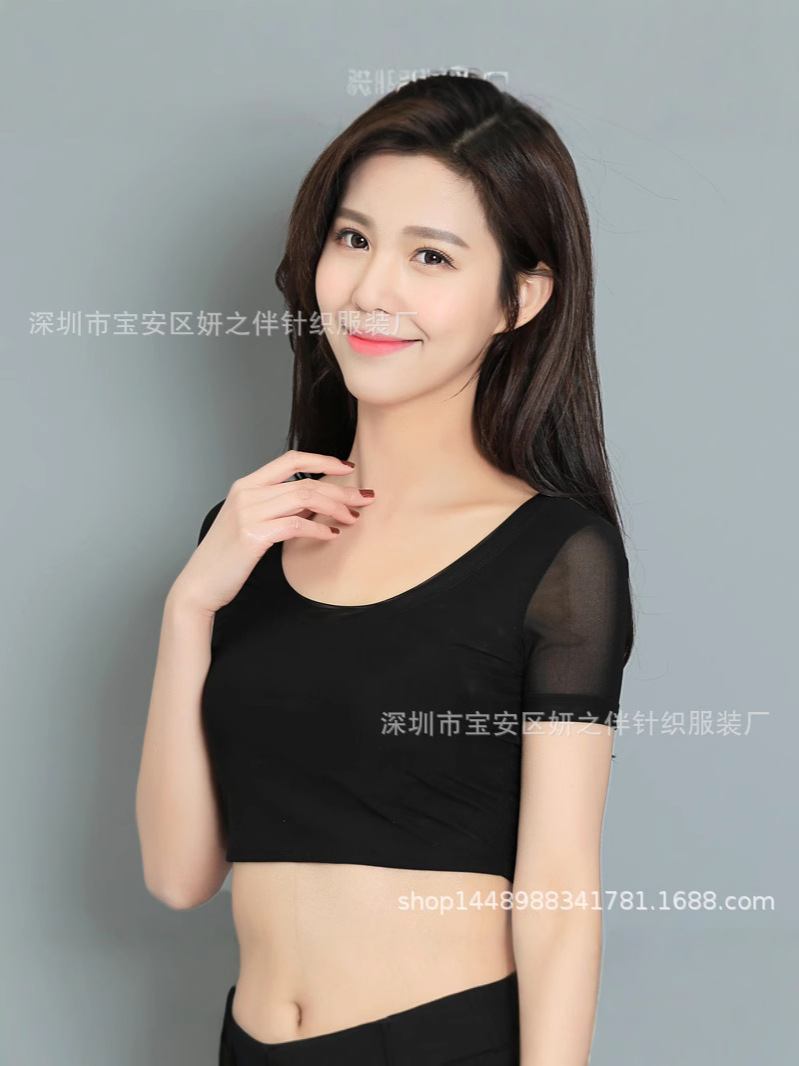 2025 весна и лето новая полуразрезная нижняя рубашка с короткими рукавами