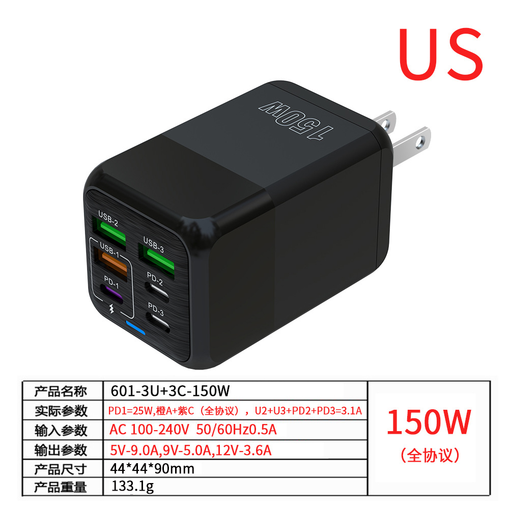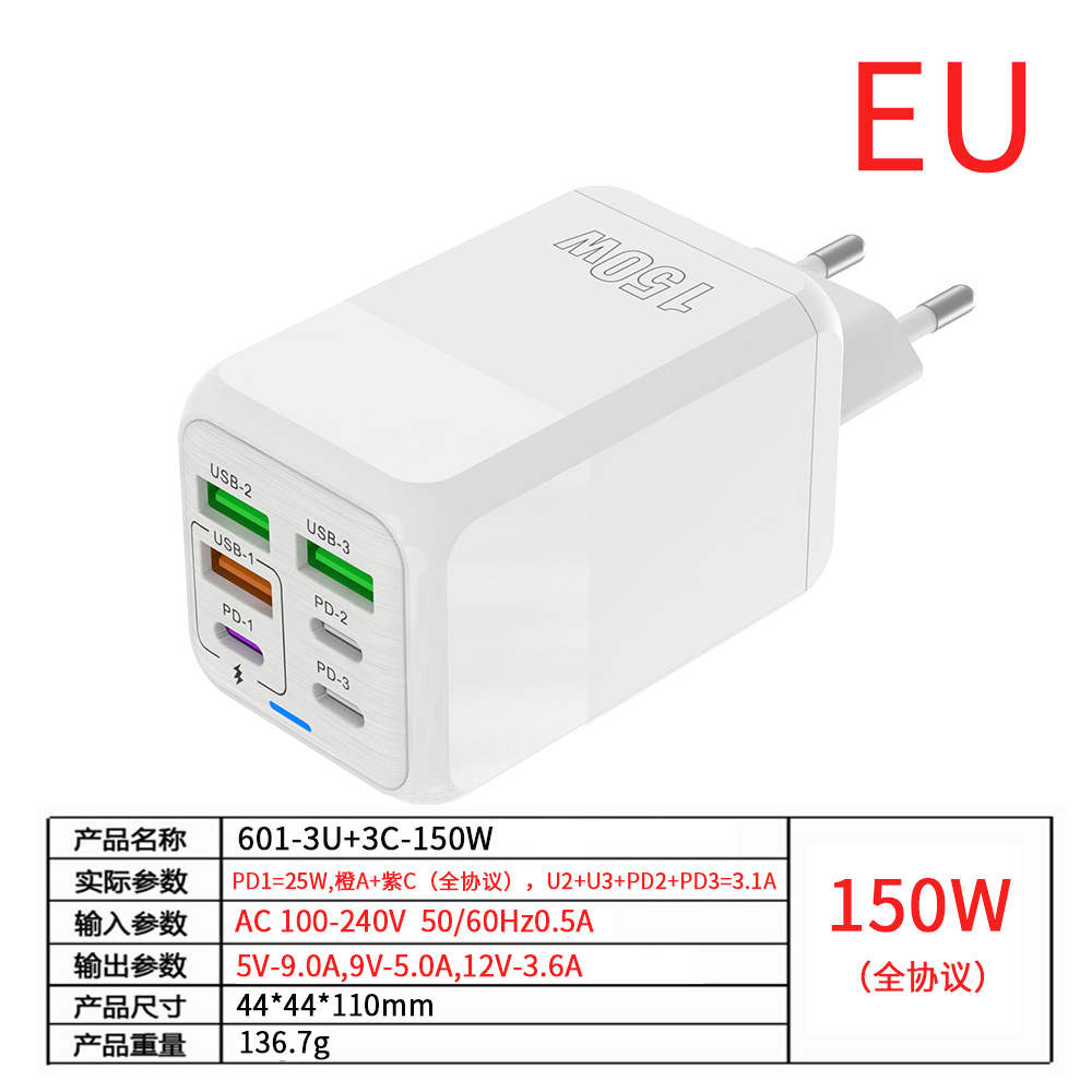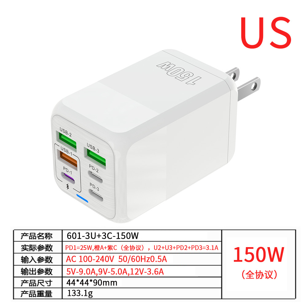 150W Многопорная зарядная головка для мобильного телефона 3USB 3PD Многопорный шесть в одном 150W Быстрое зарядное устройство 5v3.1A Быстрая зарядная головка