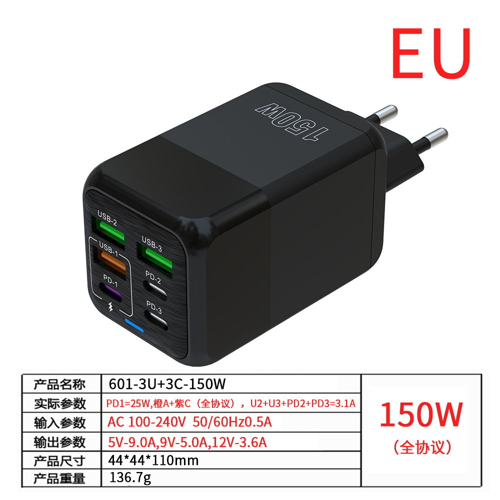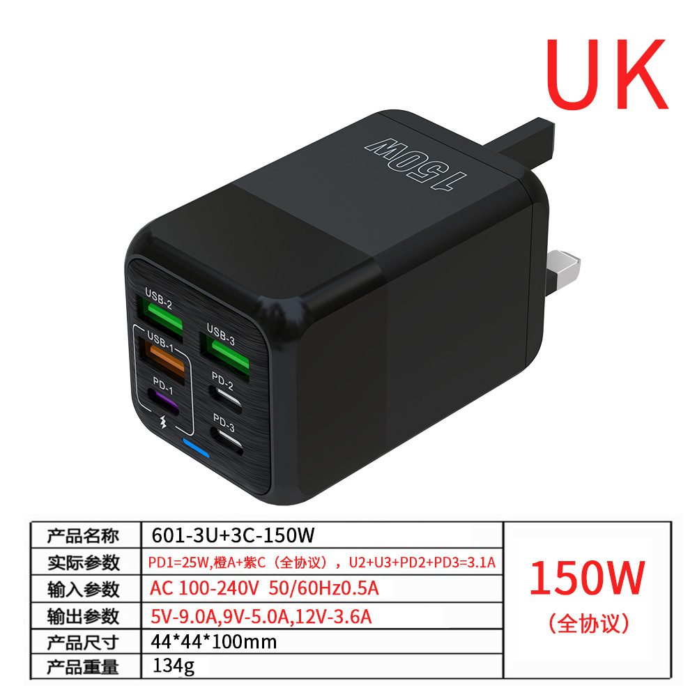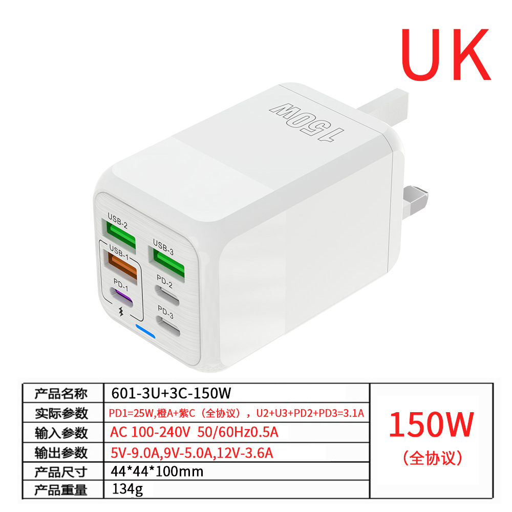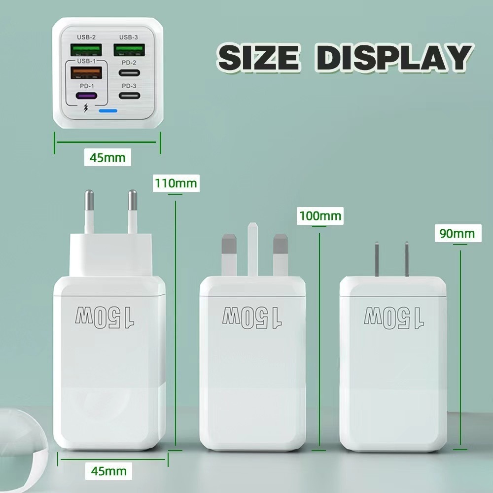 150W Многопорная зарядная головка для мобильного телефона 3USB 3PD Многопорный шесть в одном 150W Быстрое зарядное устройство 5v3.1A Быстрая зарядная головка