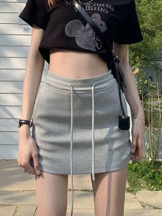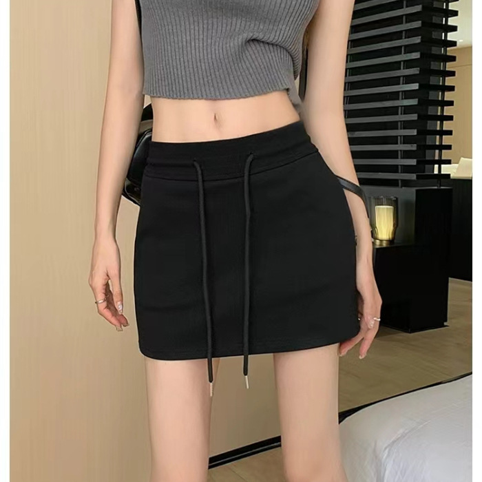 Главная страница > Сладкий и пряный стиль, спортивная однотонная короткая юбка на шнурке, весенне-летняя новая универсальная юбка трапециевидной формы с высокой талией для девочек, осень
