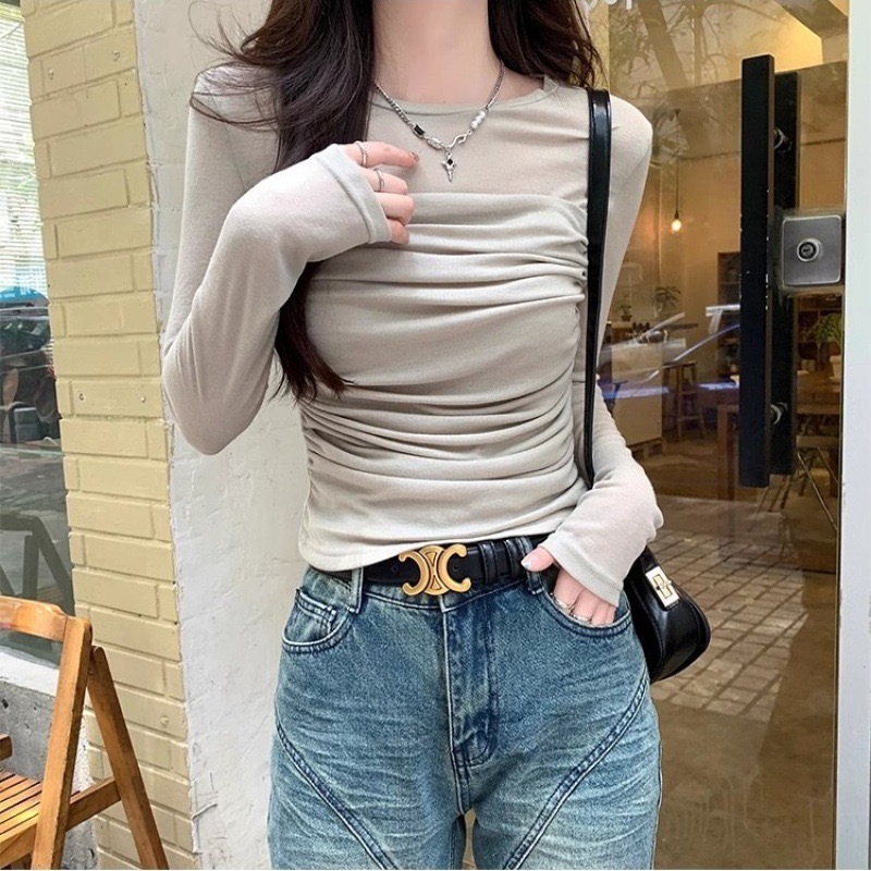 Трансграничная оптовая продажа 2025 новая футболка с длинными рукавами женская тонкая рубашка тонкий топ