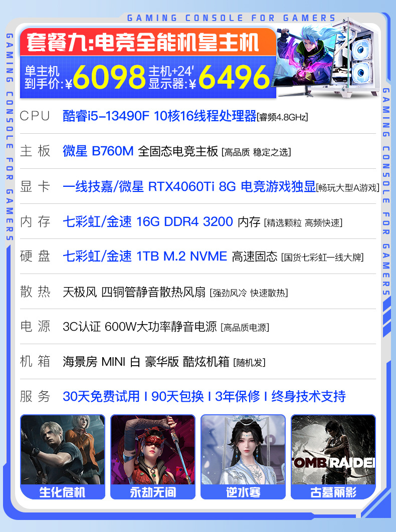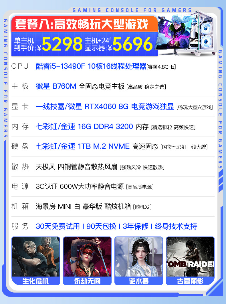 Пакет 8 i5 13490F/RTX4060 8G игровая независимая графика/1T M.2 высокоскоростной твердотельный накопитель