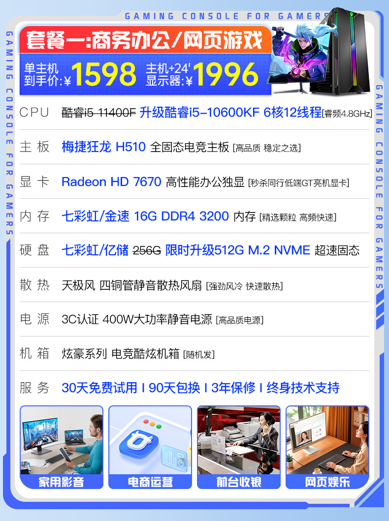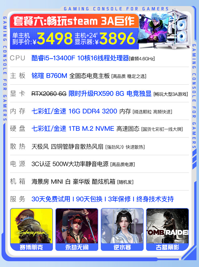 Пакет 6 i5 13400F/RX590 8G игровая независимая графика/1T M.2 высокоскоростной твердотельный накопитель