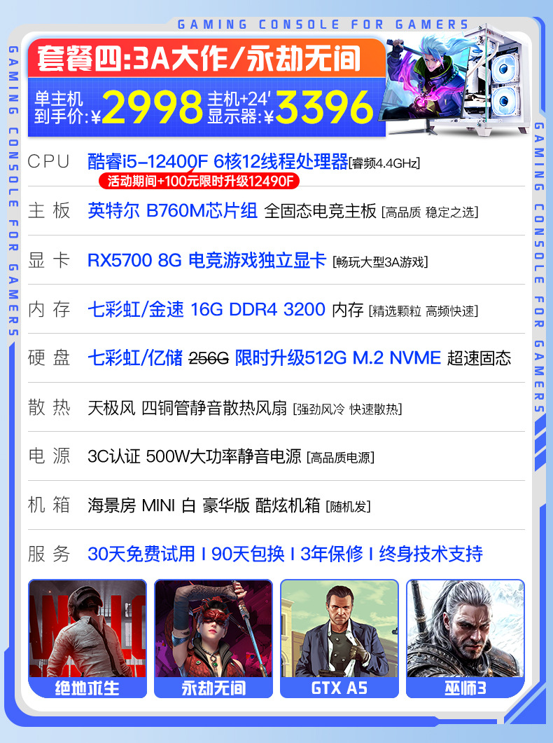 Конфигурация 5: i5 12490F/RX6500/8G для киберспорта, независимая графика/512G M.2, высокоскоростной твердотельный накопитель