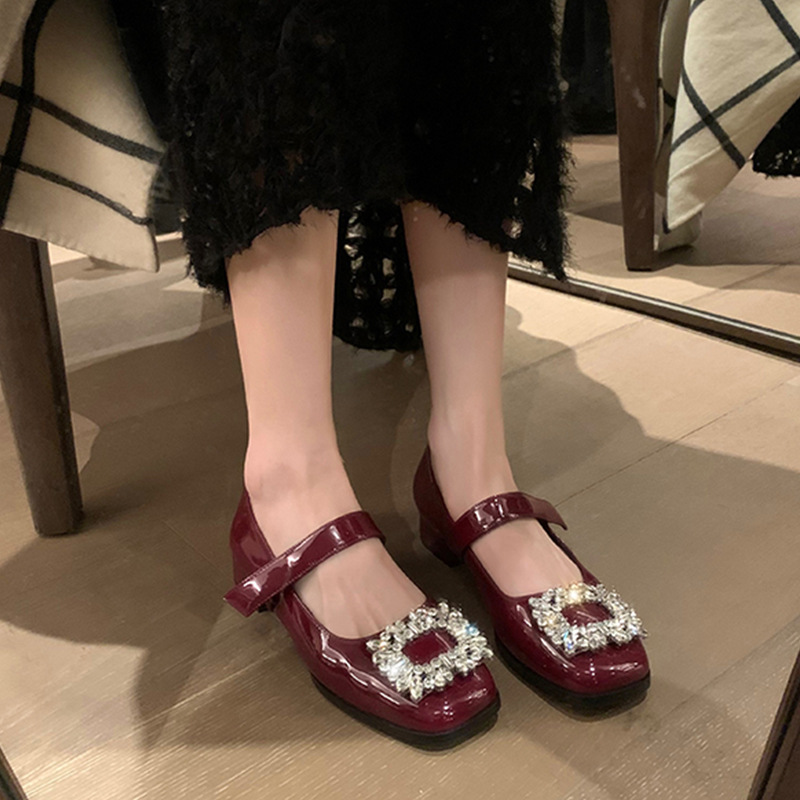 Главная страница > Готово в наличии и отправлены в секунду ~ Женские туфли Мэри Джейн с квадратной пряжкой и стразами, новые лакированные кожаные туфли во французском стиле на низком каблуке с неглубоким горлышком, кожаные туфли на толстом каблуке на плоской подошве