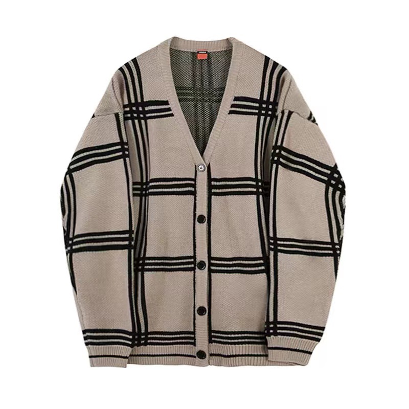 Главная страница > Мужской кардиган в клетку в Корейском стиле, пальто на весну и осень, модный красивый свободный свитер в Корейском стиле