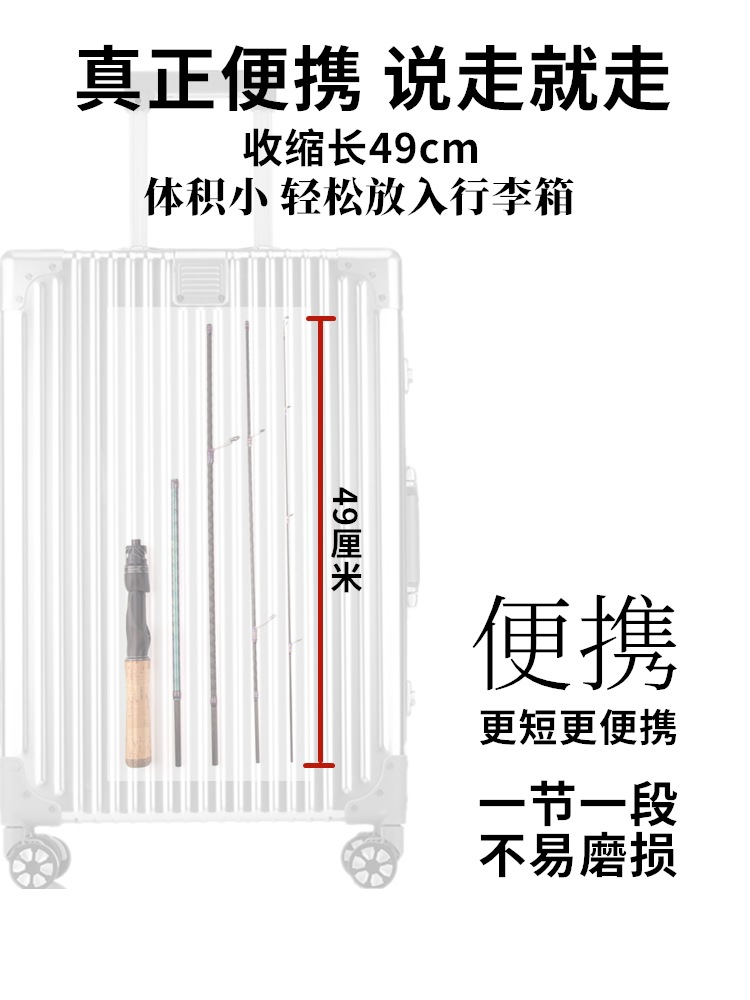 Luya Kingdom 25 моделей четырехсекционных и пятисекционных портативных дорожных удилищ Luya с микрочастицами и зелеными наконечниками и белыми полосками.