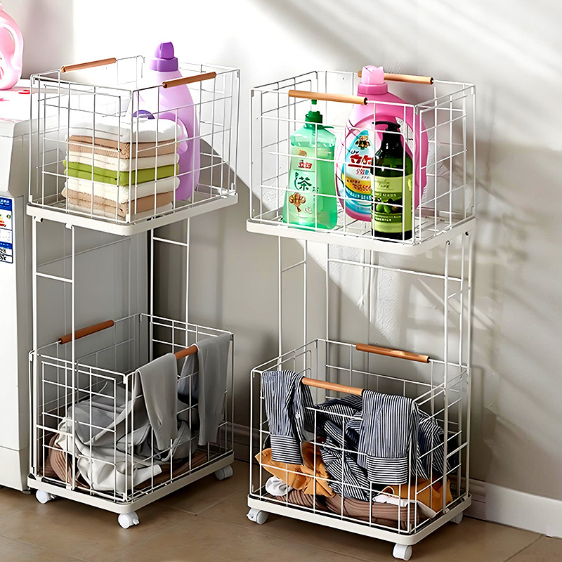 Главная страница > Корзина для хранения грязной одежды, двухслойная корзина для грязной одежды, стеллаж для хранения в домашней ванной комнате, съемная складная корзина для грязной одежды