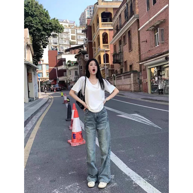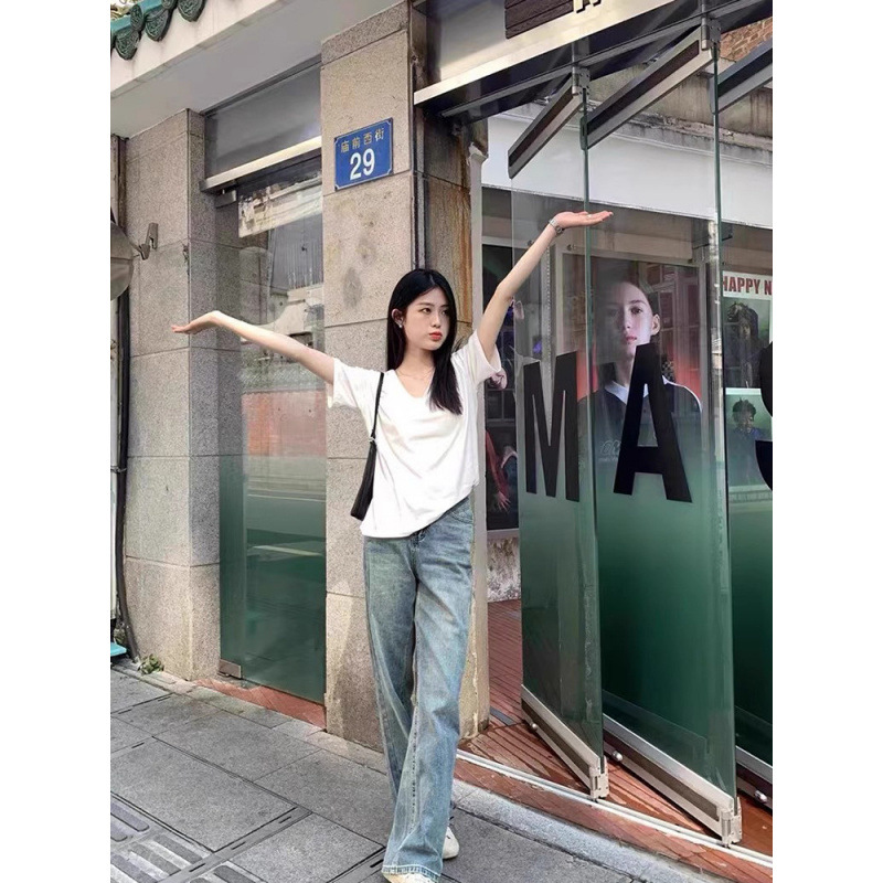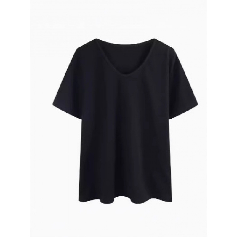 Главная страница > Женская футболка с U-образным вырезом, белая, с короткими рукавами, универсальная, лето 2025, свободная футболка с большим вырезом, утягивающая внутреннюю футболку