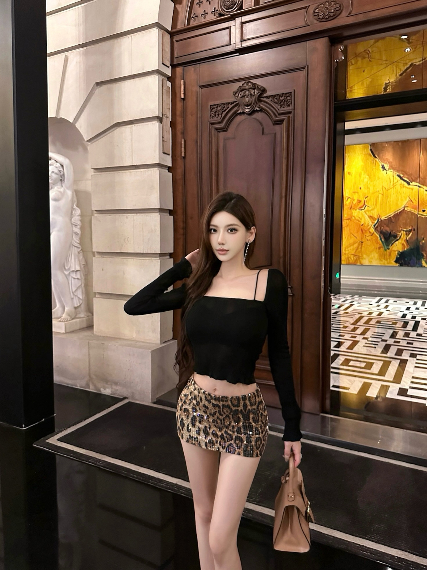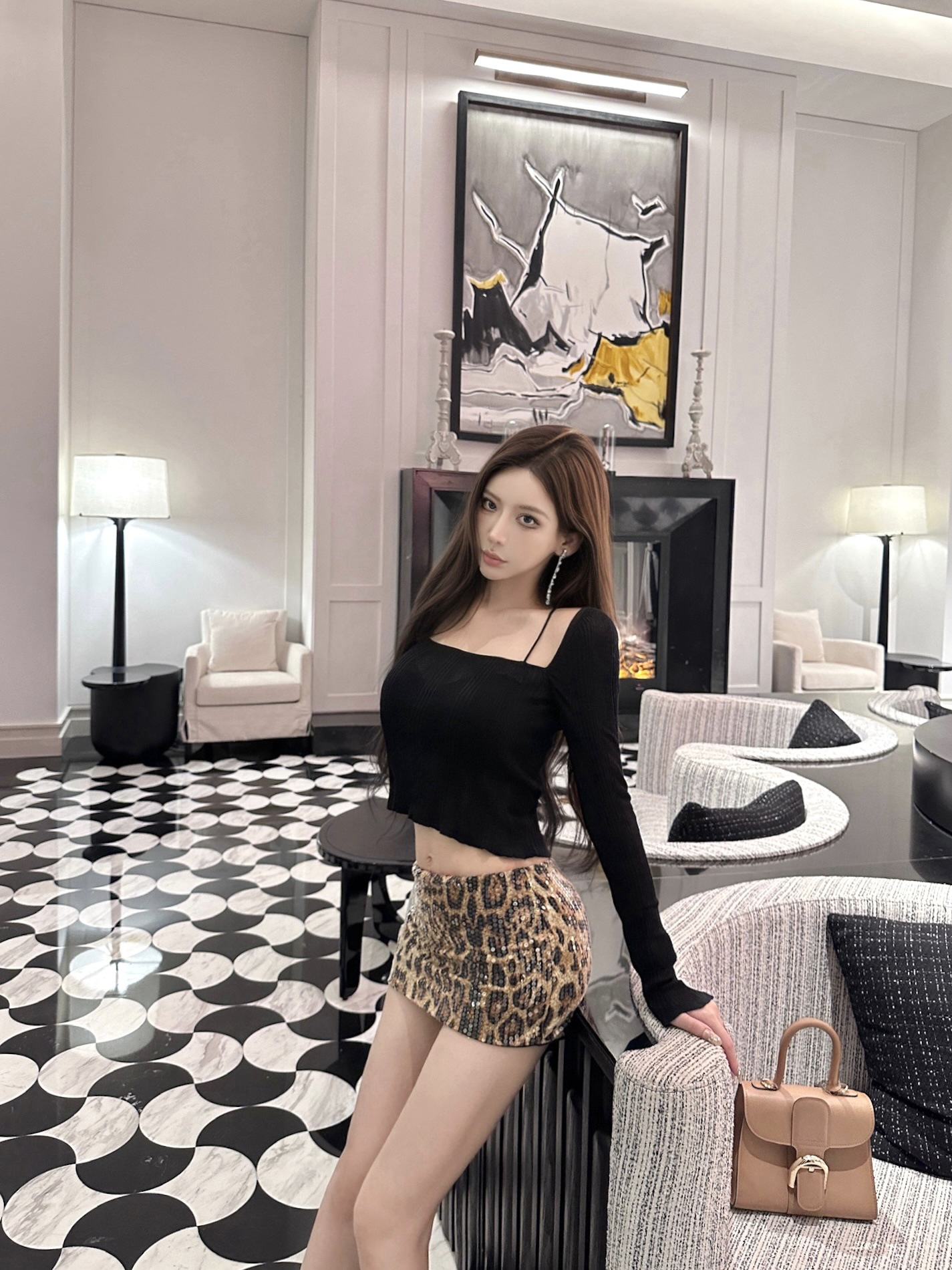 Главная страница > Американская пряная девушка леопардовый принт с блестками юбка с блеском женская 2024 осень новый стиль Nin Chao Pure с низкой талией юбка бедра короткая юбка
