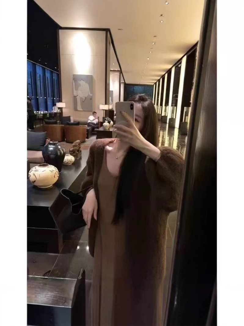 Главная страница > YUNSHU мягкий и восковой свитер в корейском стиле, женский свитер в ленивом стиле, осень-зима 202, свободный вязаный кардиган из альпаки