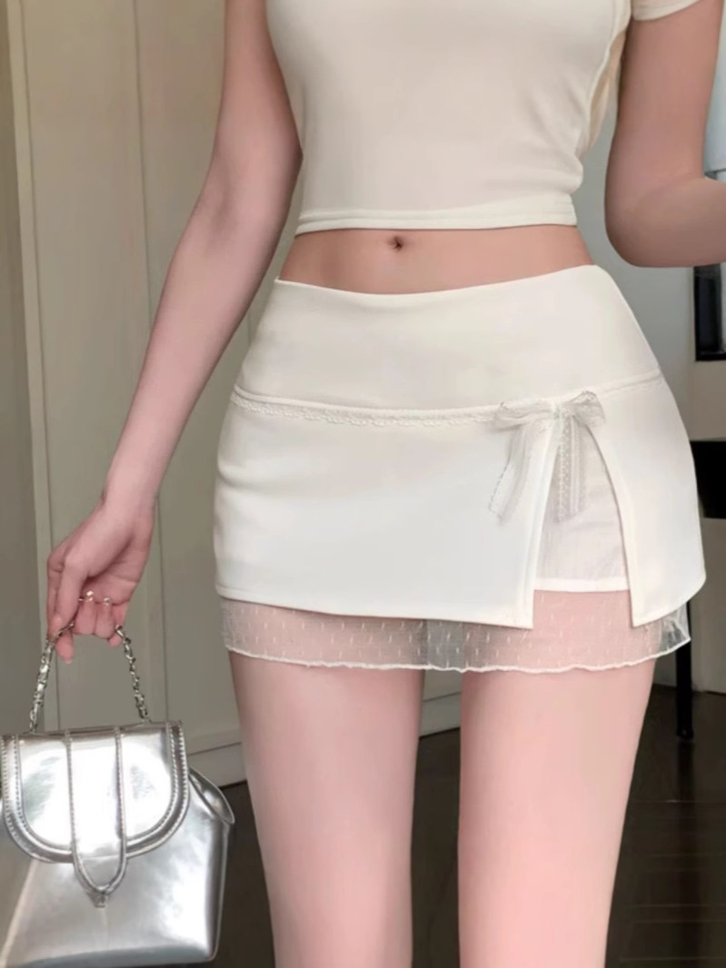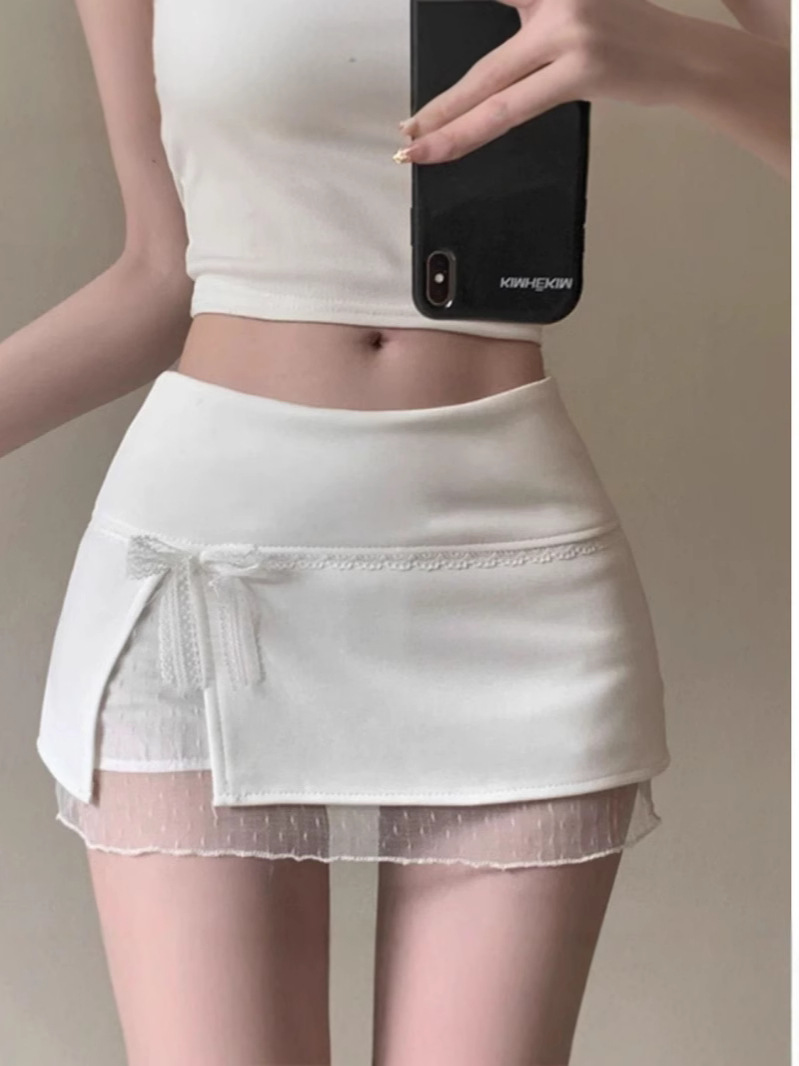 Главная страница > Новая летняя милая женская короткая юбка трапециевидной формы с сексуальным кружевом и бантом, двухслойная, облегающая бедра, для женщин