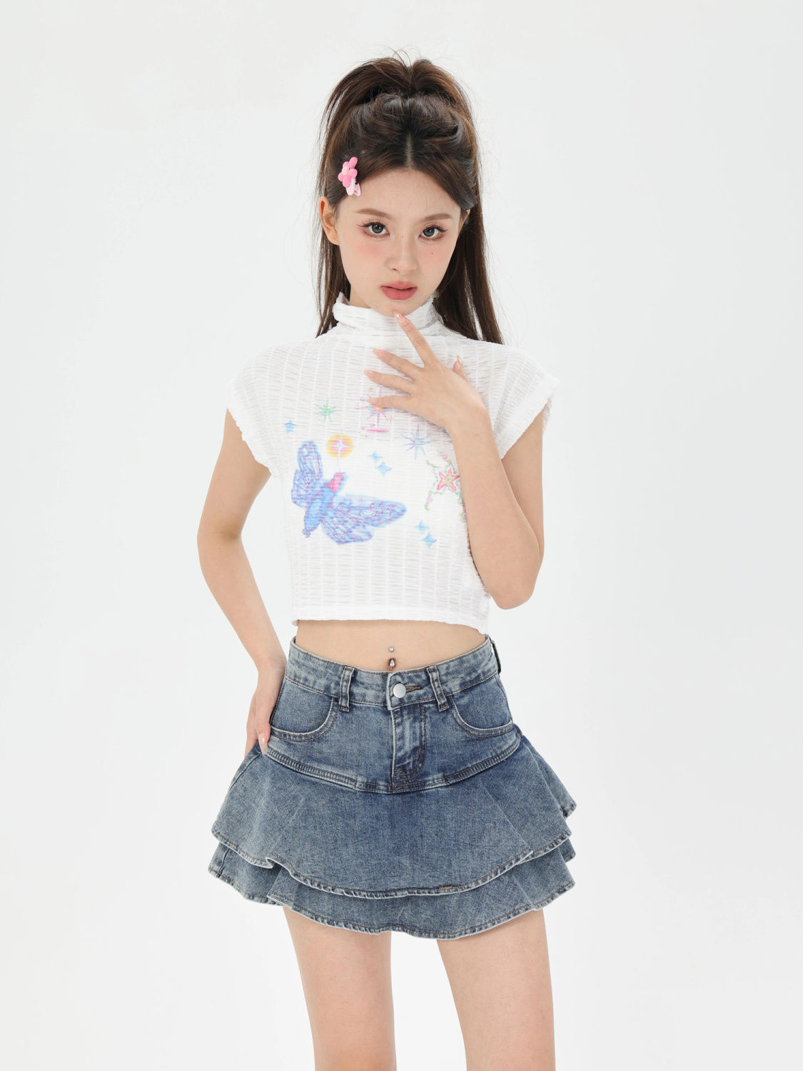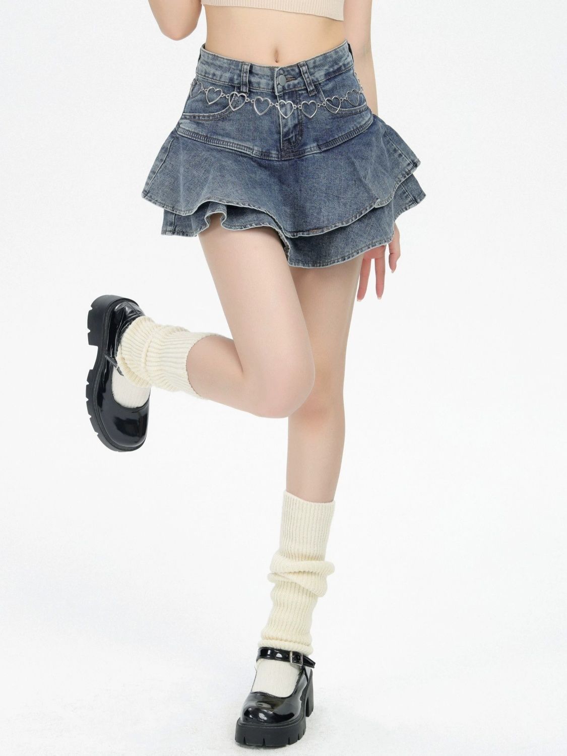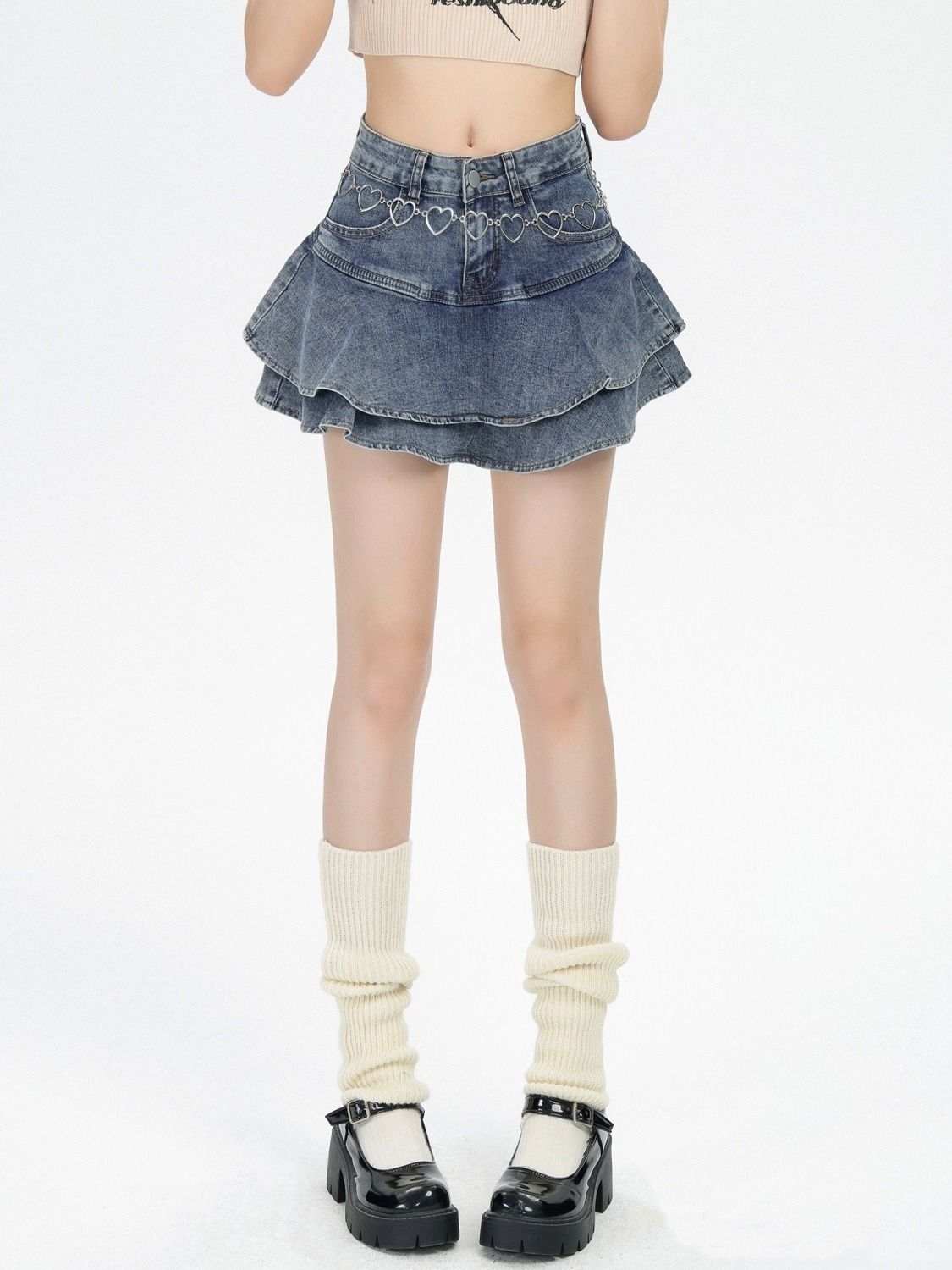 Высокая талия пряная девушка с рюшами джинсовый торт юбка бюст женская летняя невинность