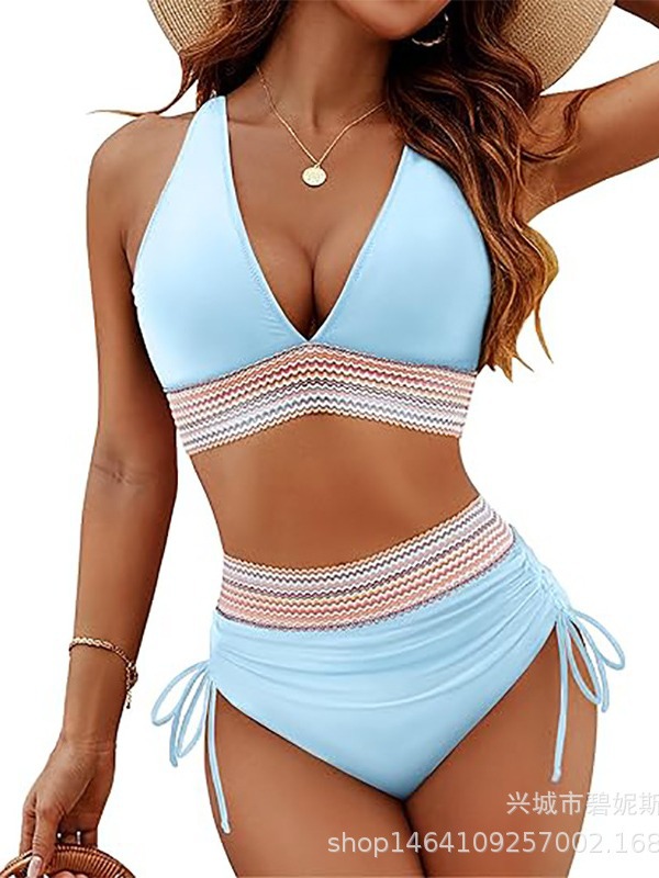 Европейские и американские купальники внешней торговли женские разделенные бикини с высокой талией тонкая сексуальная шнуровка