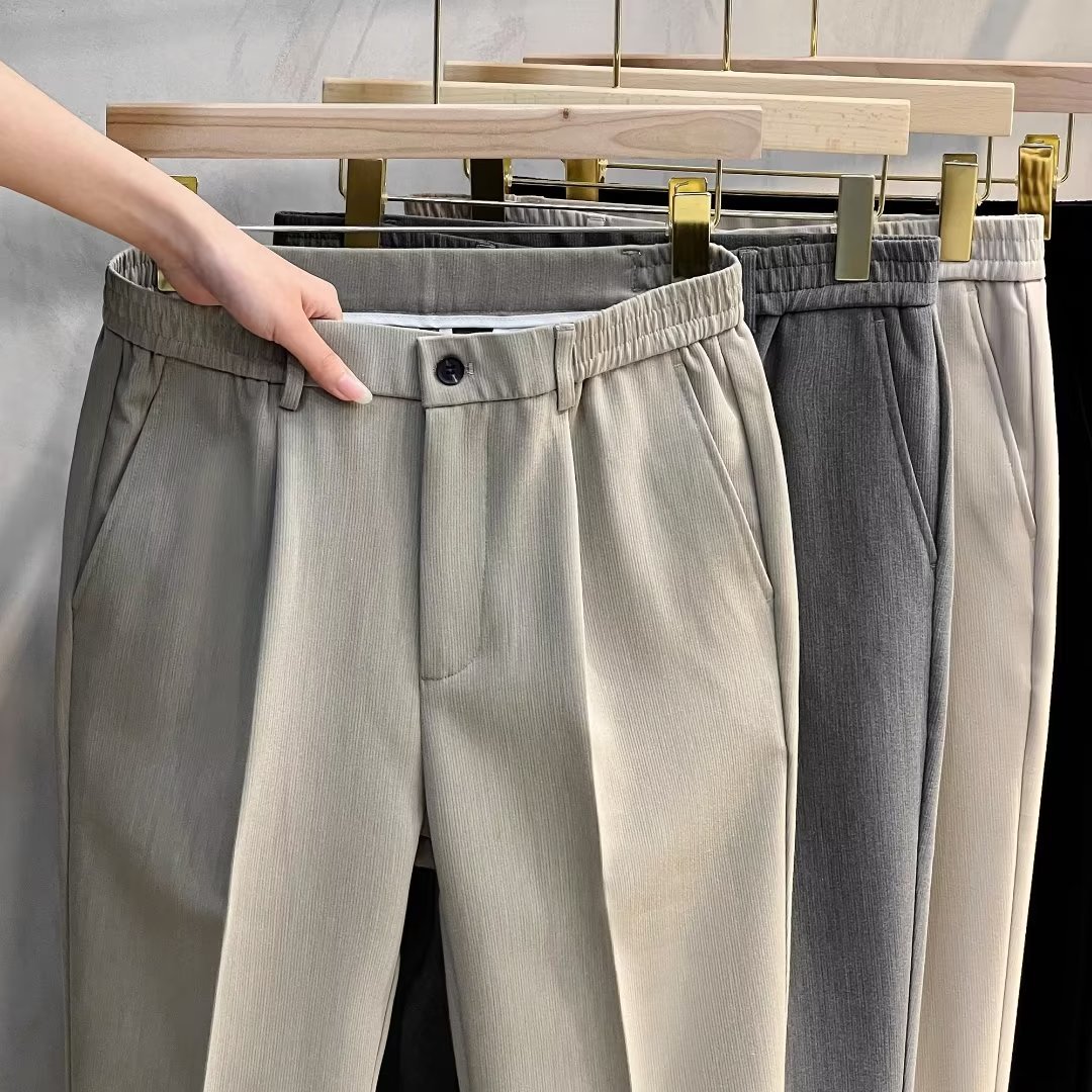 Главная страница > Весенние и осенние драпированные девятиточечные брюки для мужчин, деловые повседневные прямые облегающие брюки, модные костюмные брюки, против морщин, без железа