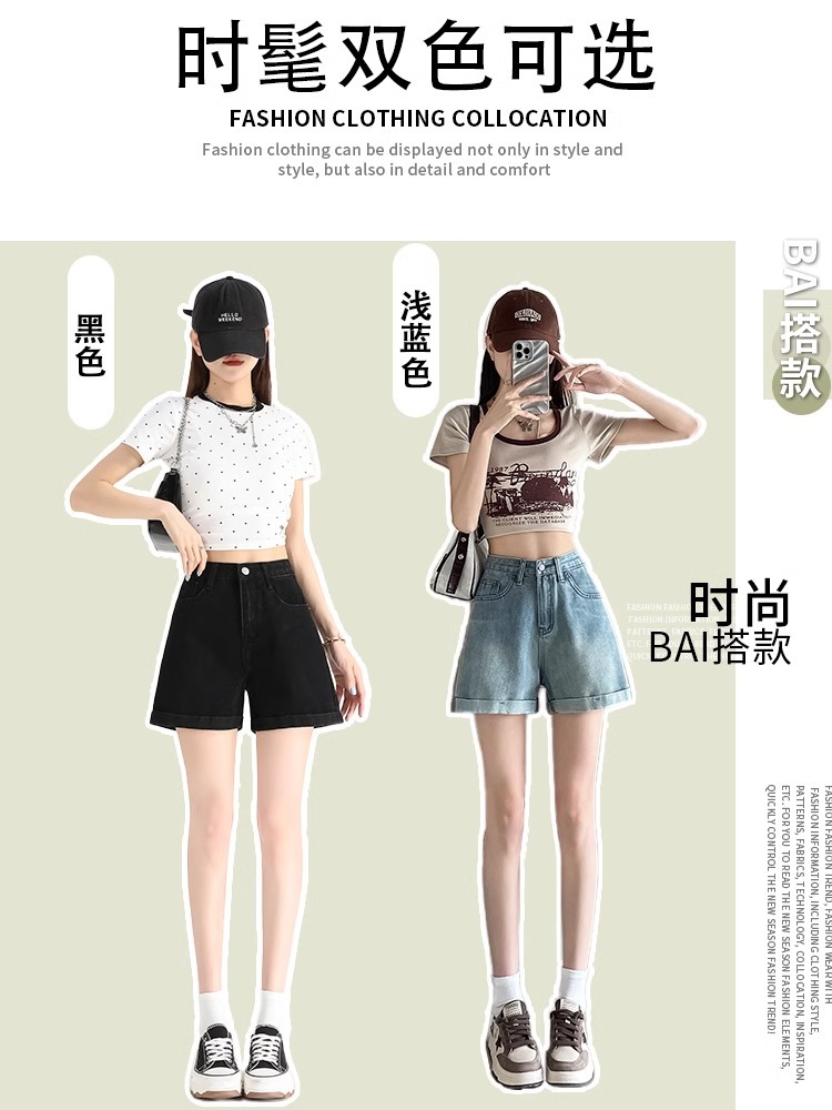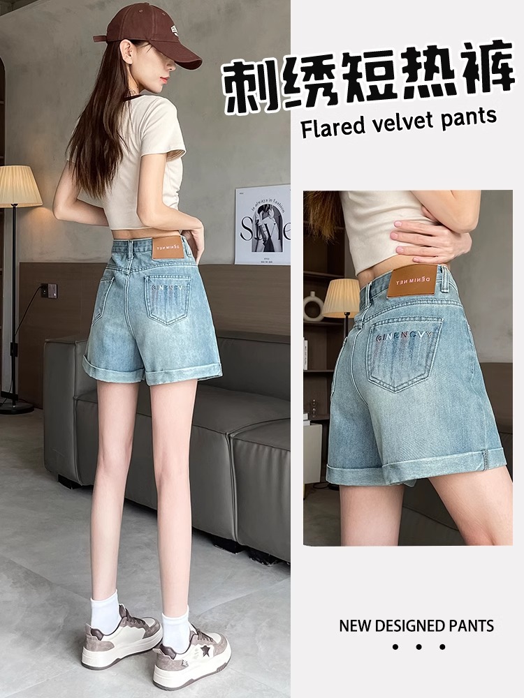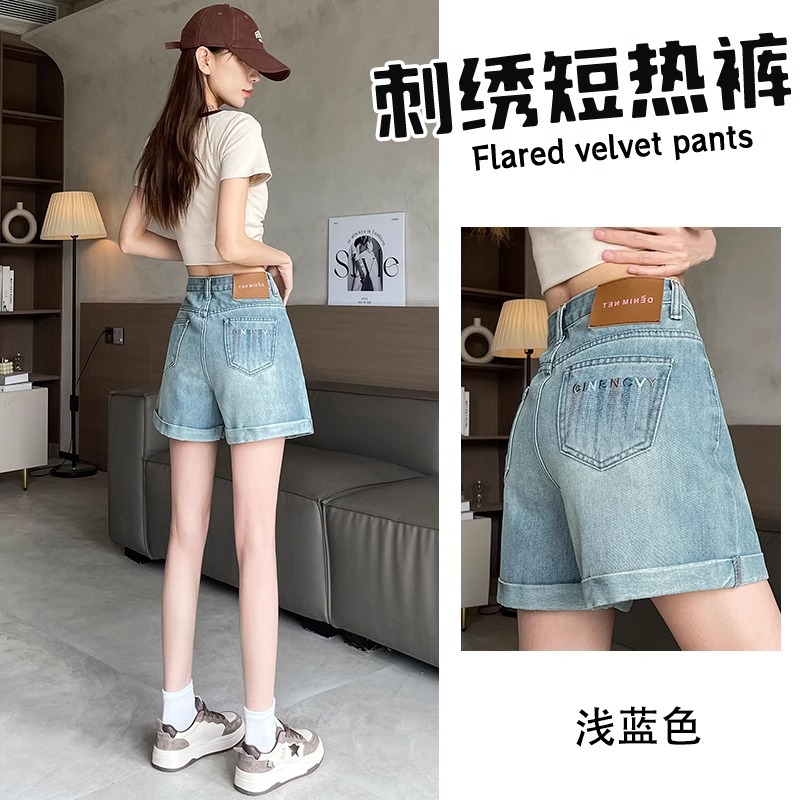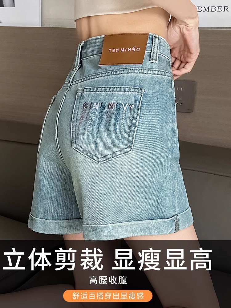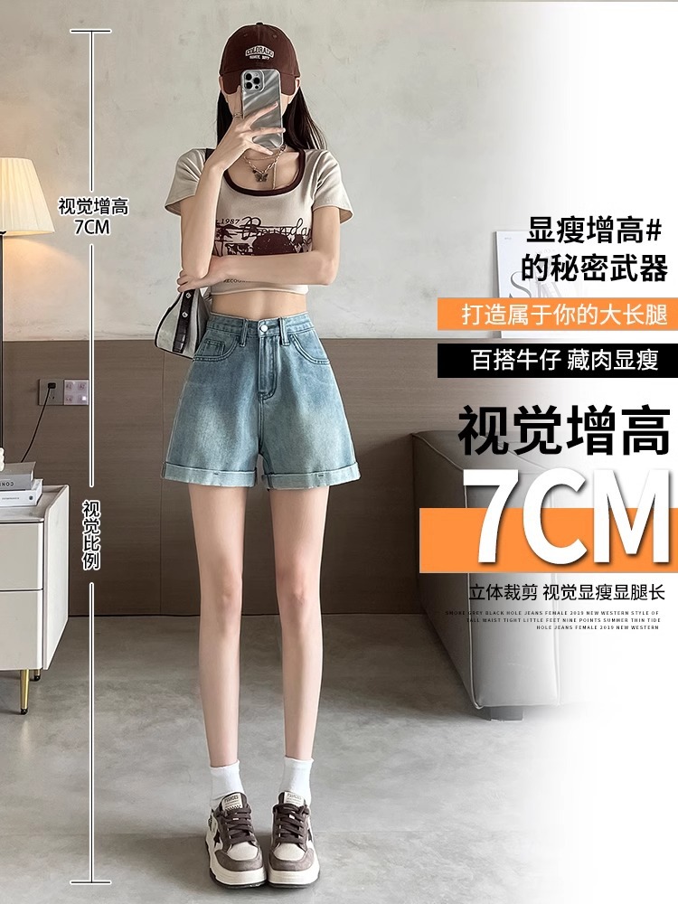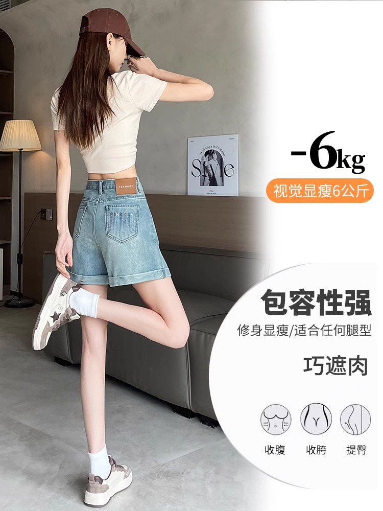 Главная страница > Голубые джинсовые шорты в стиле ретро, женские летние тонкие шорты 2025 года, новые узкие брюки трапециевидной формы с высокой талией, завитые шорты