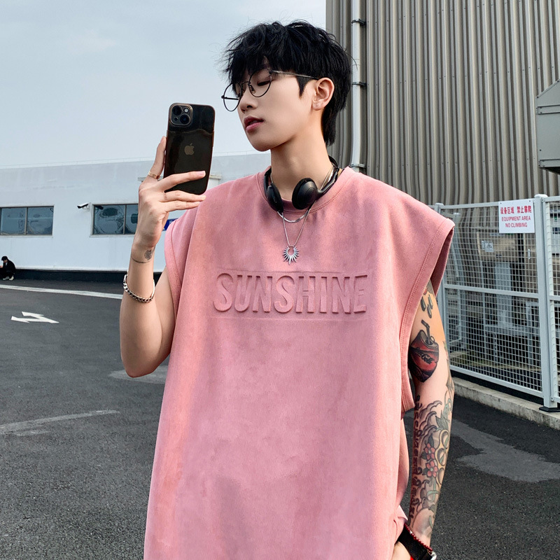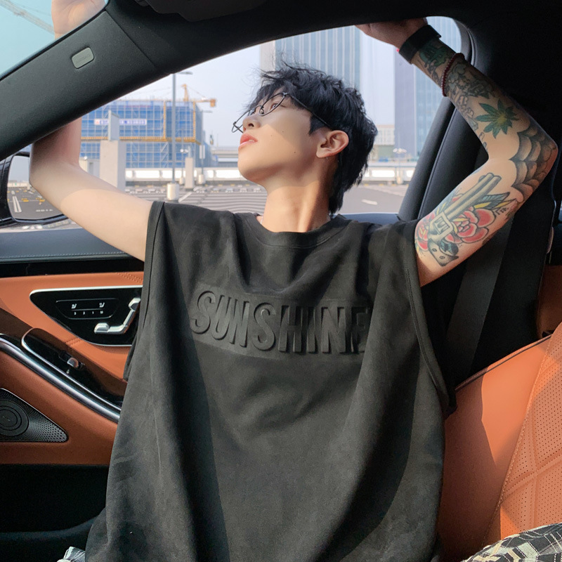 Главная страница > Замшевая стальная печать без рукавов жилет для мужчин летом тонкая американская высокая улица плечо футболка прилив ретро тяжелая футболка T