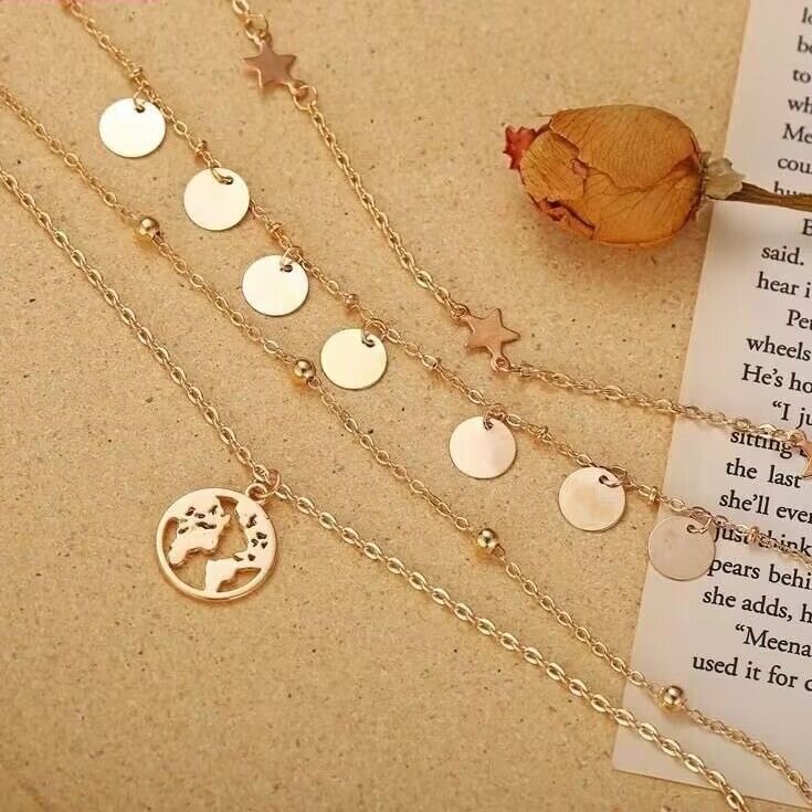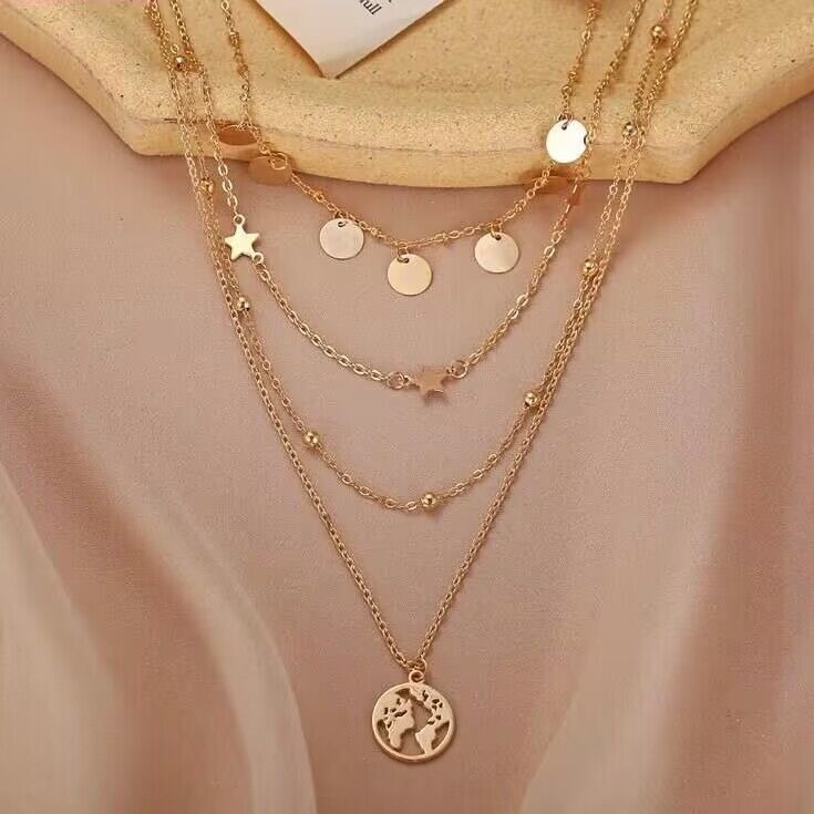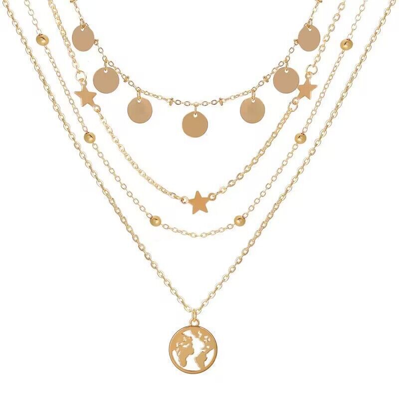 Главная страница > 2024 Европейский и американский трансграничный новый простой круглый пятиконечный звездный кулон многослойное ожерелье креативный сплав ключицы цепи