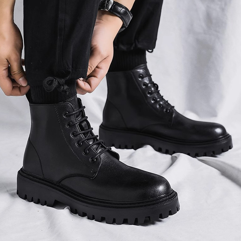 Главная страница > Мужские ботинки Мартин для осени и зимы, универсальная мужская обувь в корейском стиле, высокие ботинки в британском стиле, кожаные ботинки на платформе, рабочие ботинки, мотоциклетные ботинки средней высоты.