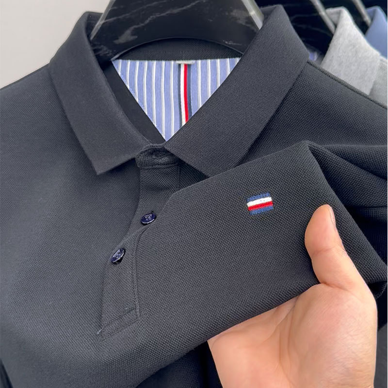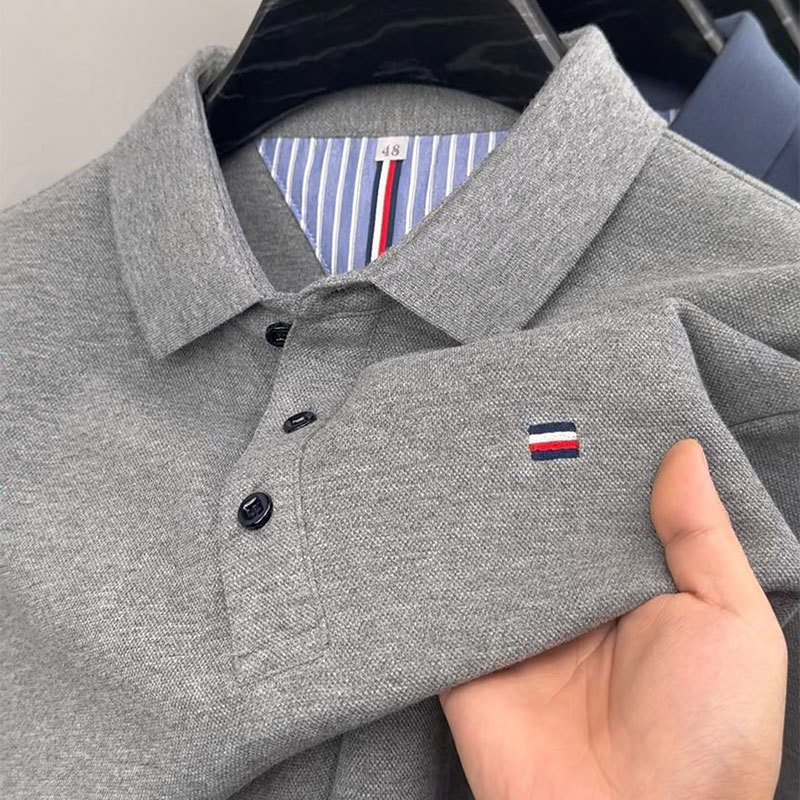 Главная страница > Мужская футболка-поло с длинным рукавом 2025 года, осенняя, однотонная, из пике-хлопка, с отложным воротником, повседневная, свободная, дышащая, для мужчин среднего возраста
