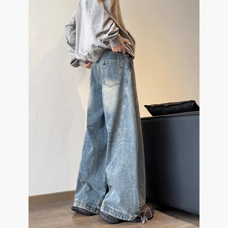 Главная страница > Широкие мужские джинсы-сабо в американском стиле, модные брендовые длинные брюки весны и осени, прямые повседневные свободные брюки в пол в стиле хип-хоп.
