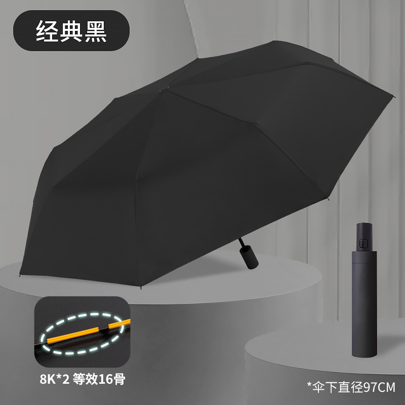 Портативный классический черный 8K — [16 ветрозащитных волокон] утолщенных и могут использоваться под дождем или в солнечную погоду.