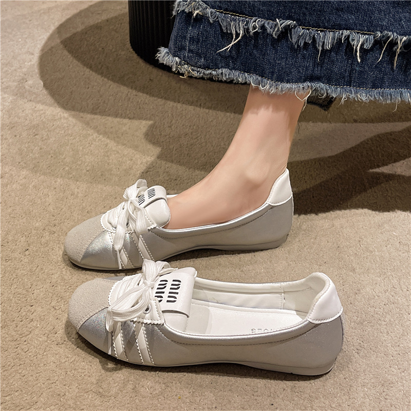 Французский балетный кроссовки женский плоский нижний 2024 летний новый шнуровка дышащий один педаль маленькие белые туфли модные одиночные туфли