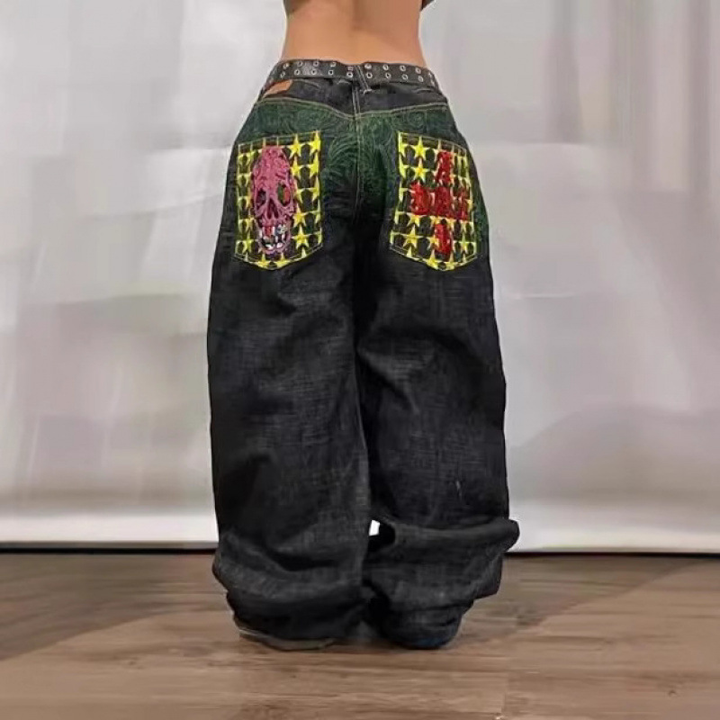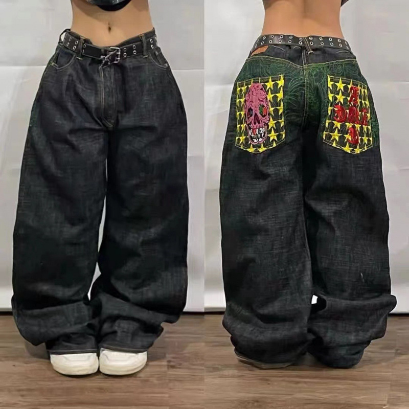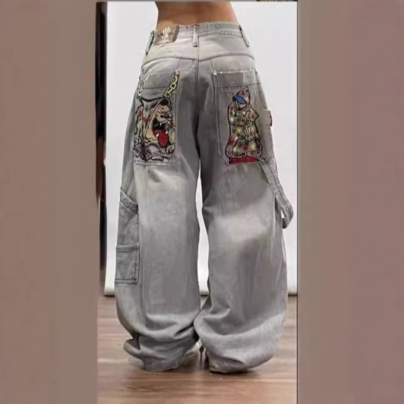 Главная страница > Мужские джинсы в готическом стиле Y2K для трансграничной электронной коммерции, американский стильный узор, свободные прямые ноги, широкие ноги, красивый