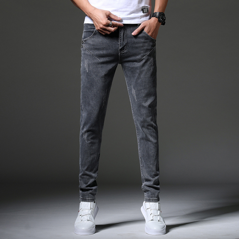 Главная страница > 2022 Весенние Новые мужские джинсы, корейские тонкие эластичные леггинсы, дышащие мужские джинсовые брюки оптом