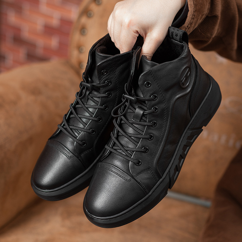 Главная страница > Прямые поставки с фабрики, мужские осенне-зимние новые повседневные короткие ботинки с высоким берцем, универсальные британские ботинки с боковой молнией и бархатные хлопковые ботинки