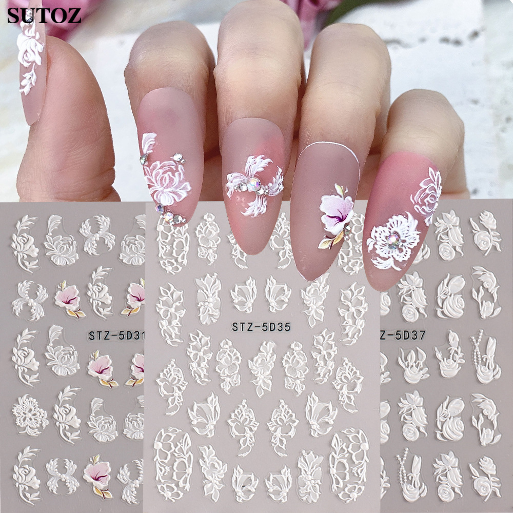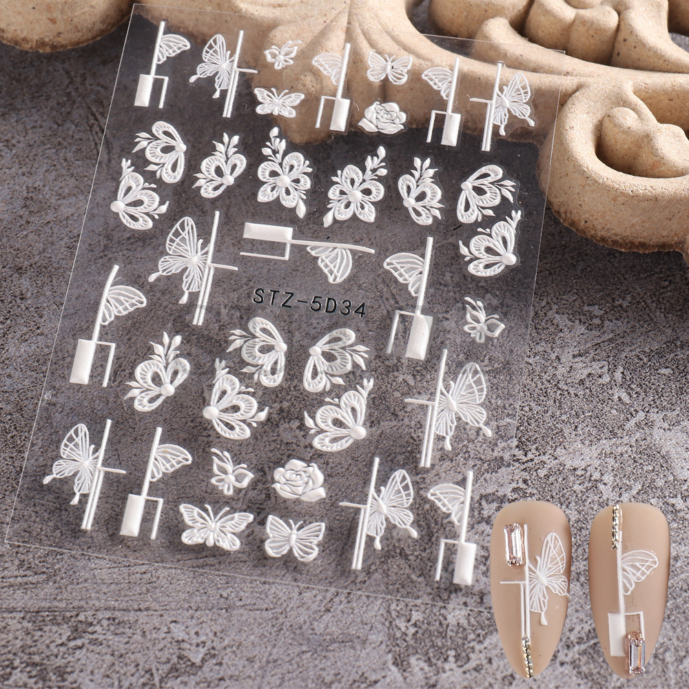 Главная страница > Трансграничные новые наклейки для ногтей 5D трехмерные резные полые Белые Свадебные Кружева для ногтей бабочка цветок наклейки для ногтей
