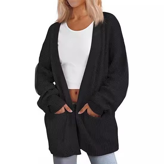 Главная страница > Amazon трансграничная осенне-зимняя новинка 2025 года, европейский и американский однотонный свободный длинный трикотаж, женские брюки с карманами и клапанами, верхняя одежда, трикотаж для женщин