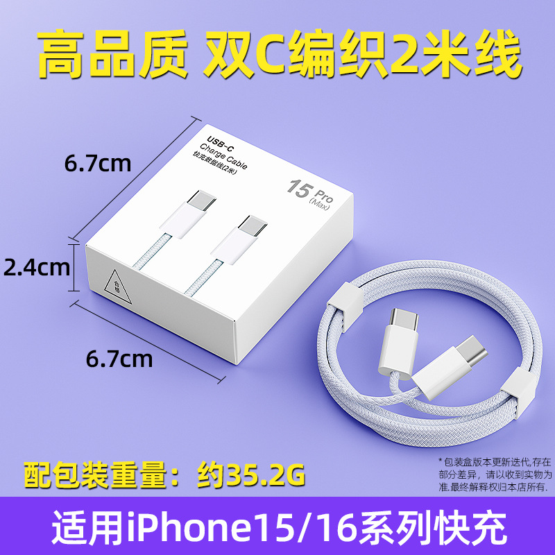 Головка для быстрой зарядки PD45w + 2m плетеных кабеля двойного типа C в коробке [сертификация 3C]