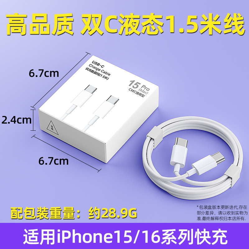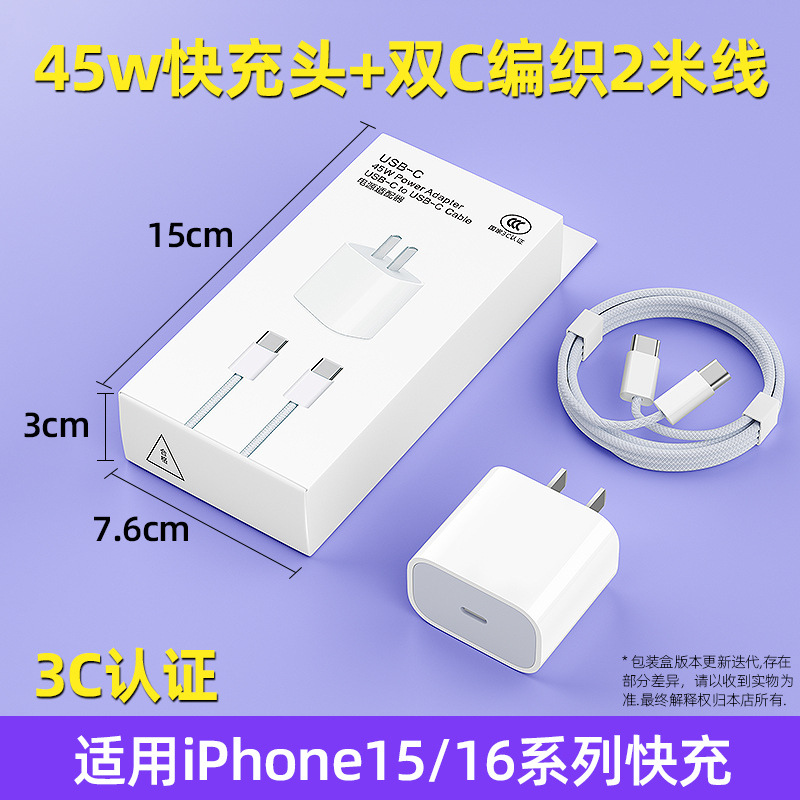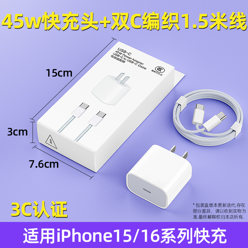 Головка для быстрой зарядки PD45w + 1.5m плетеных кабеля двойного типа C в коробке [сертификация 3C]