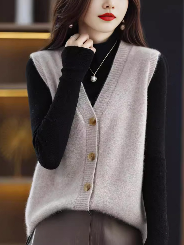 Главная страница > Оптовые женские жилеты весной и летом трикотажные без рукавов большой V-образный кардиган