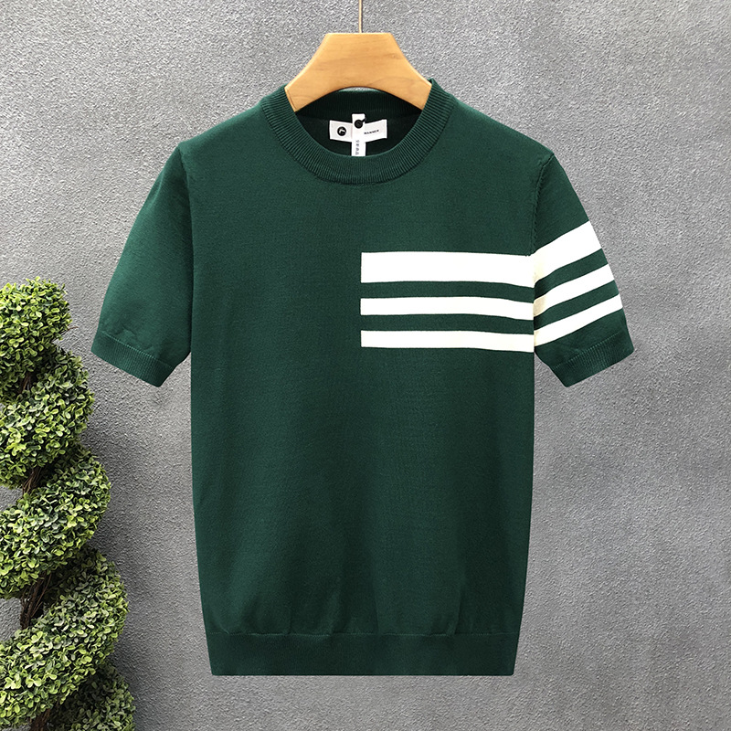 Главная страница > Летний новый трикотаж с короткими рукавами мужской полосатый простой бизнес легкий и тонкий ледяной шелк футболка внешняя торговля трансграничная оптовая торговля t