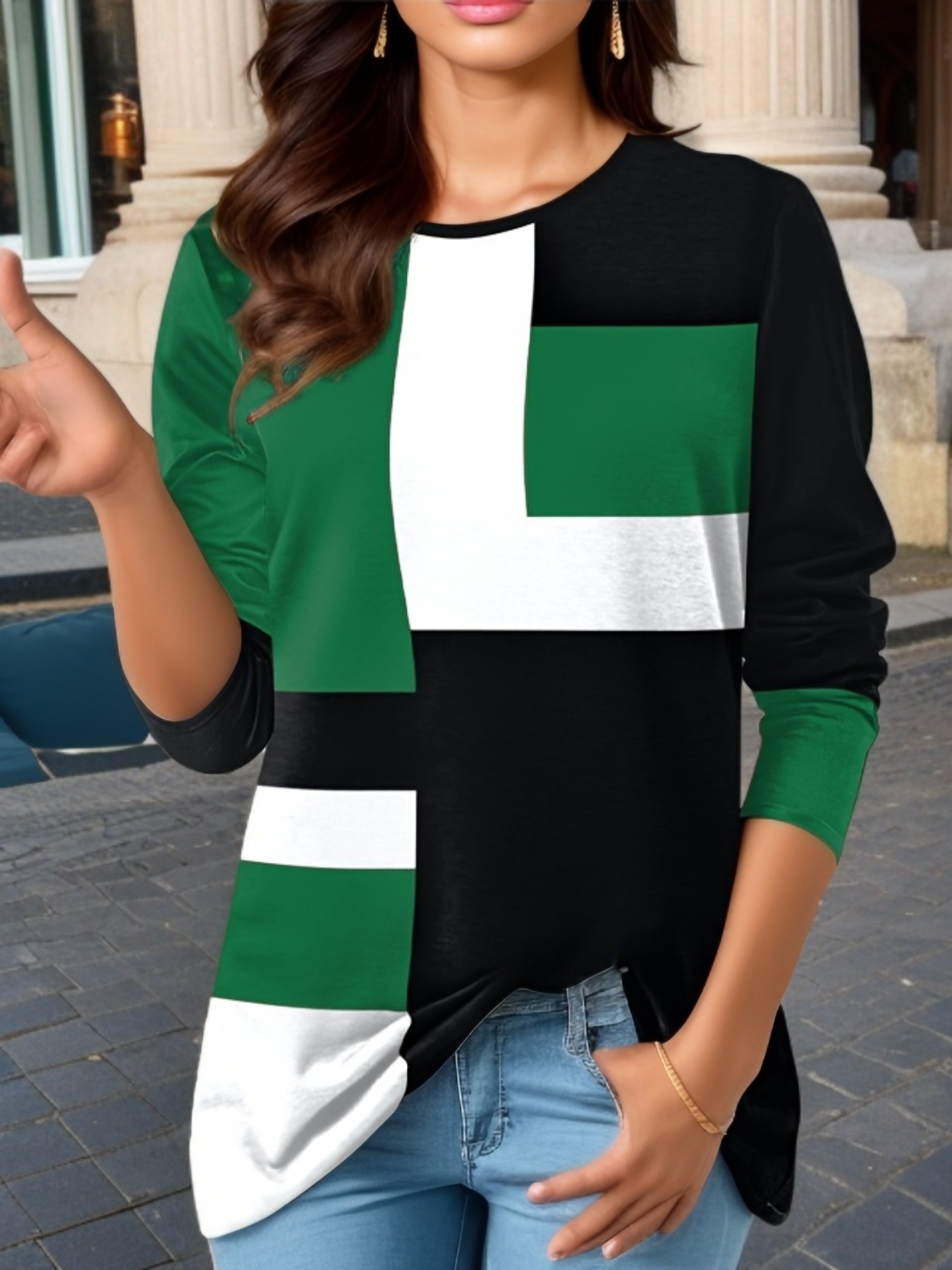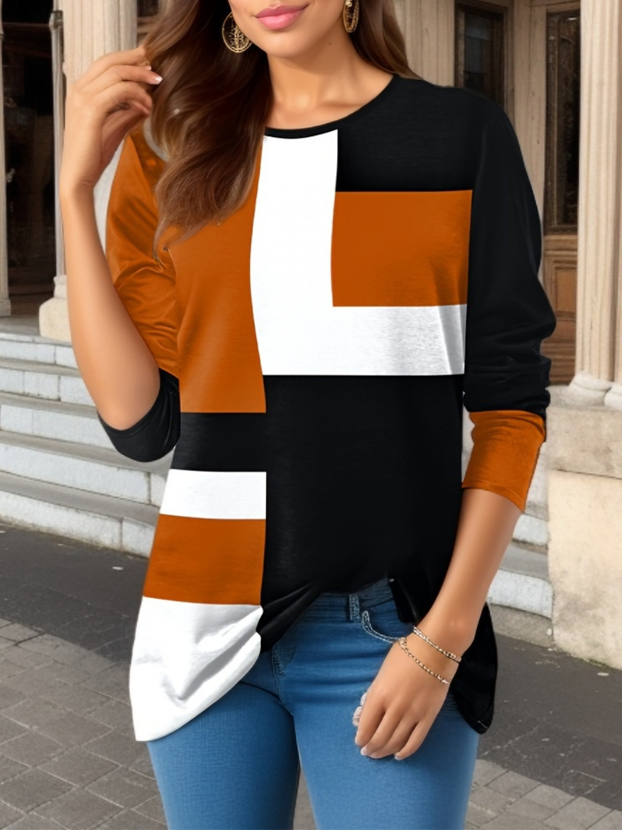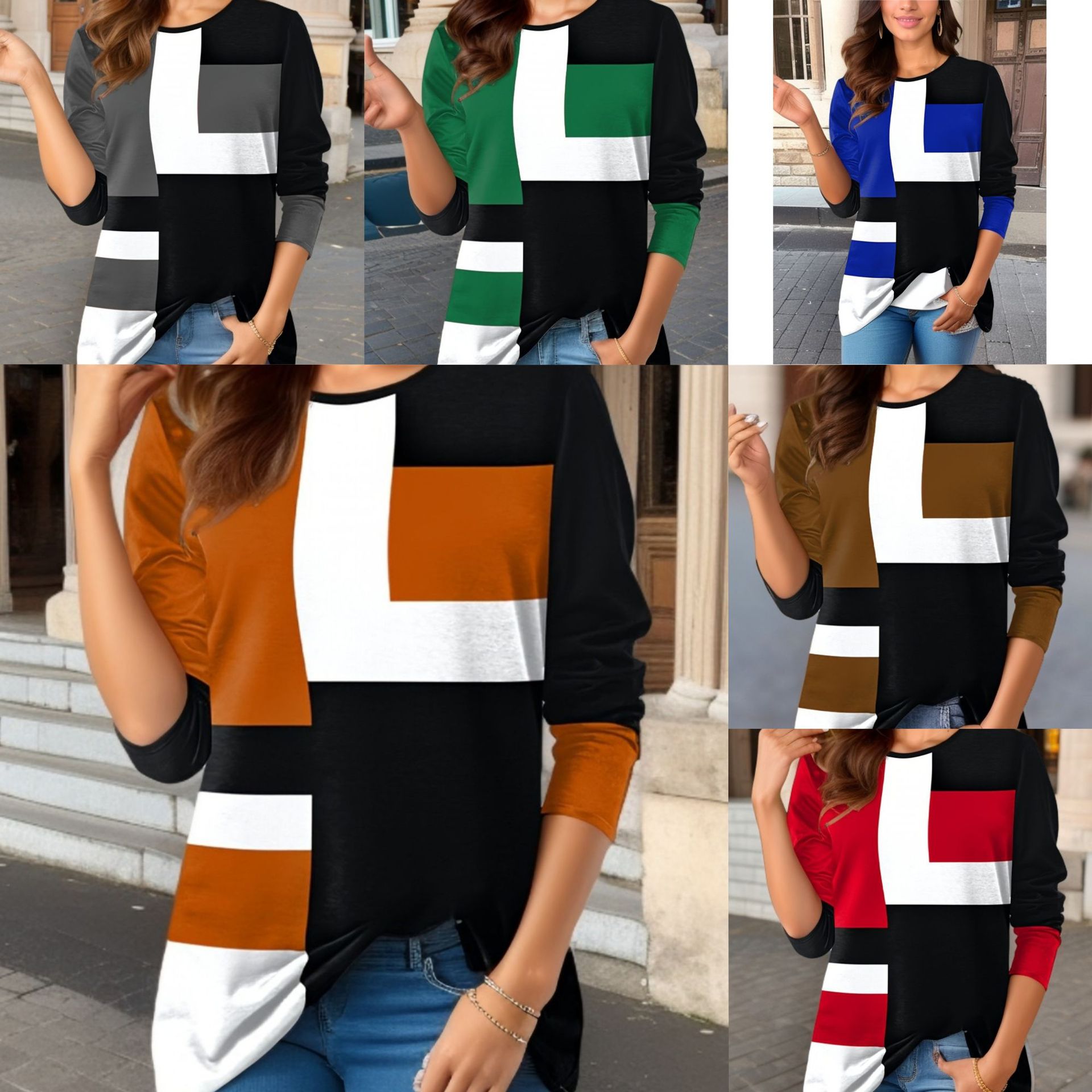 Главная страница > Европа и США трансграничная Новая женская новая футболка с длинным рукавом AliExpress Amazon Wish Ebay с геометрическим сочетанием цветов в наличии