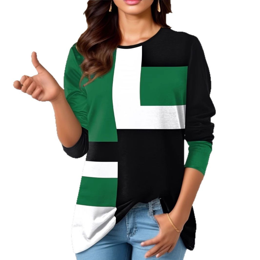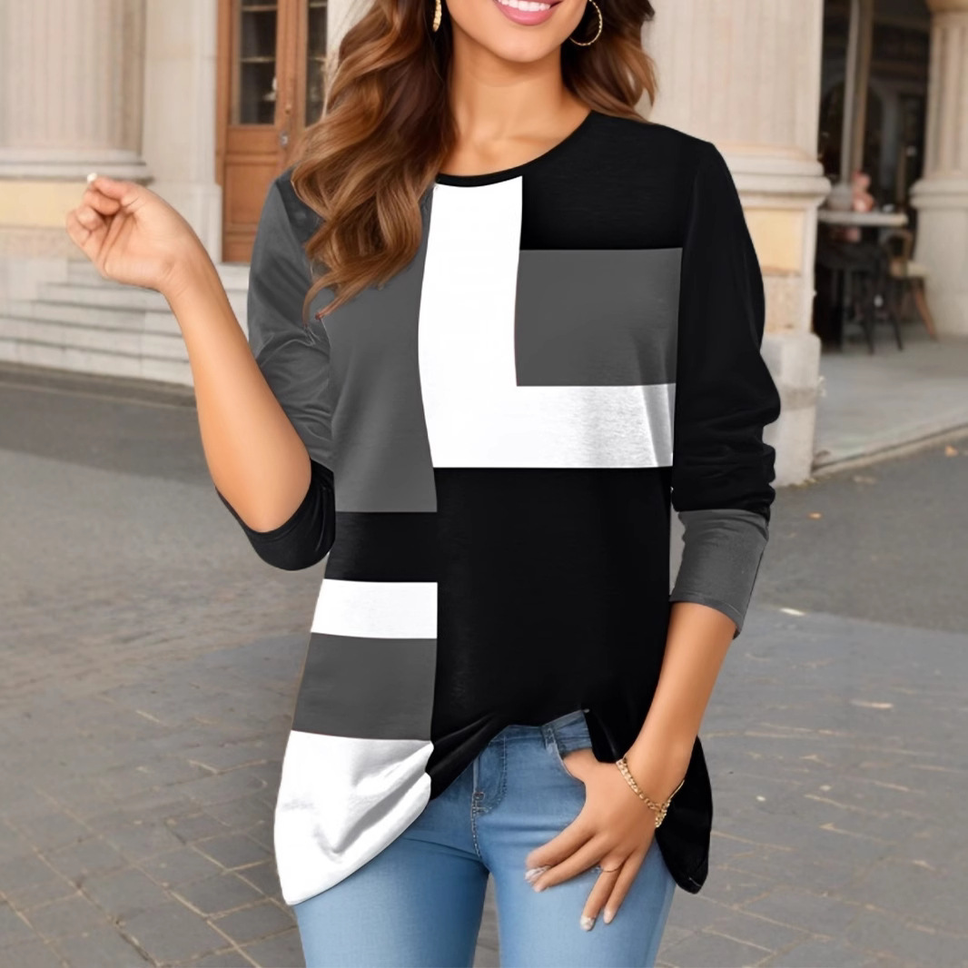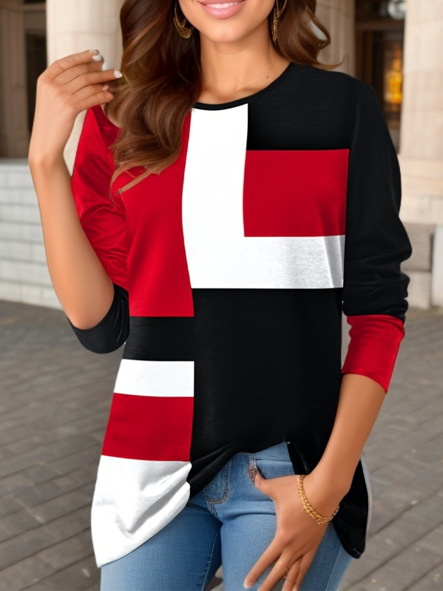 Главная страница > Европа и США трансграничная Новая женская новая футболка с длинным рукавом AliExpress Amazon Wish Ebay с геометрическим сочетанием цветов в наличии