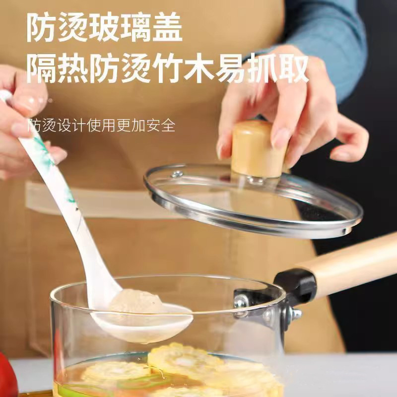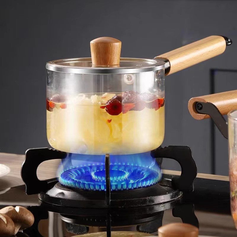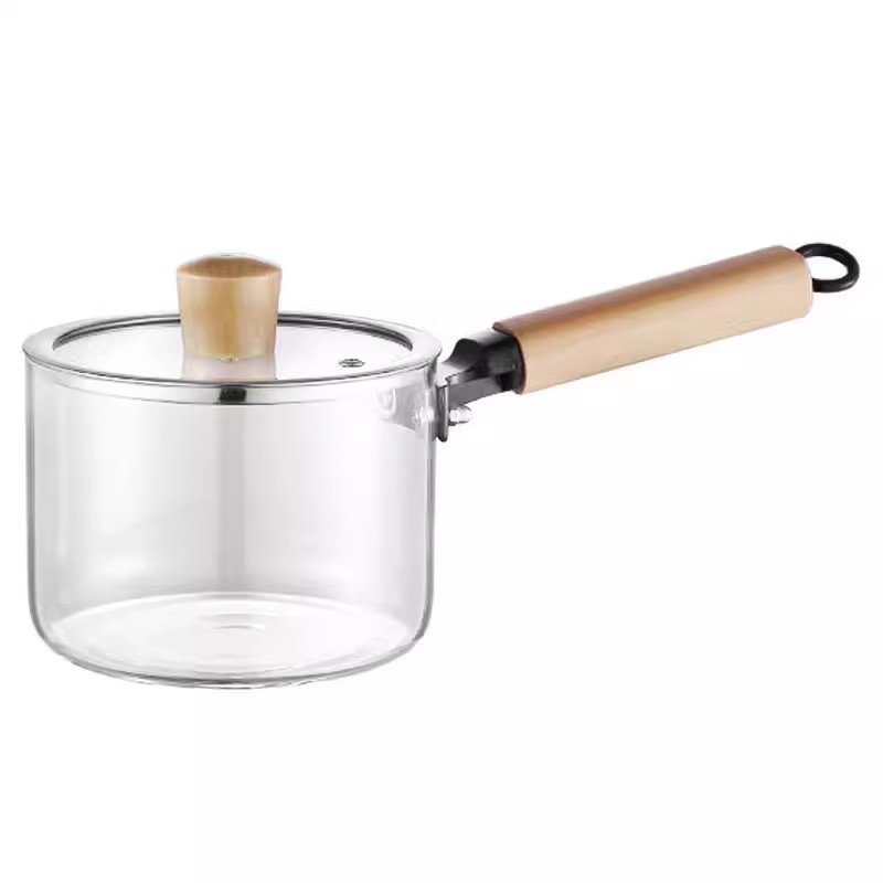 Стеклянная кастрюля для тушения из боросиликатного стекла с одной ручкой, электрическая керамическая плита, кастрюля для лапши быстрого приготовления, бытовая высокотемпературная прозрачная стеклянная кастрюля для молока.