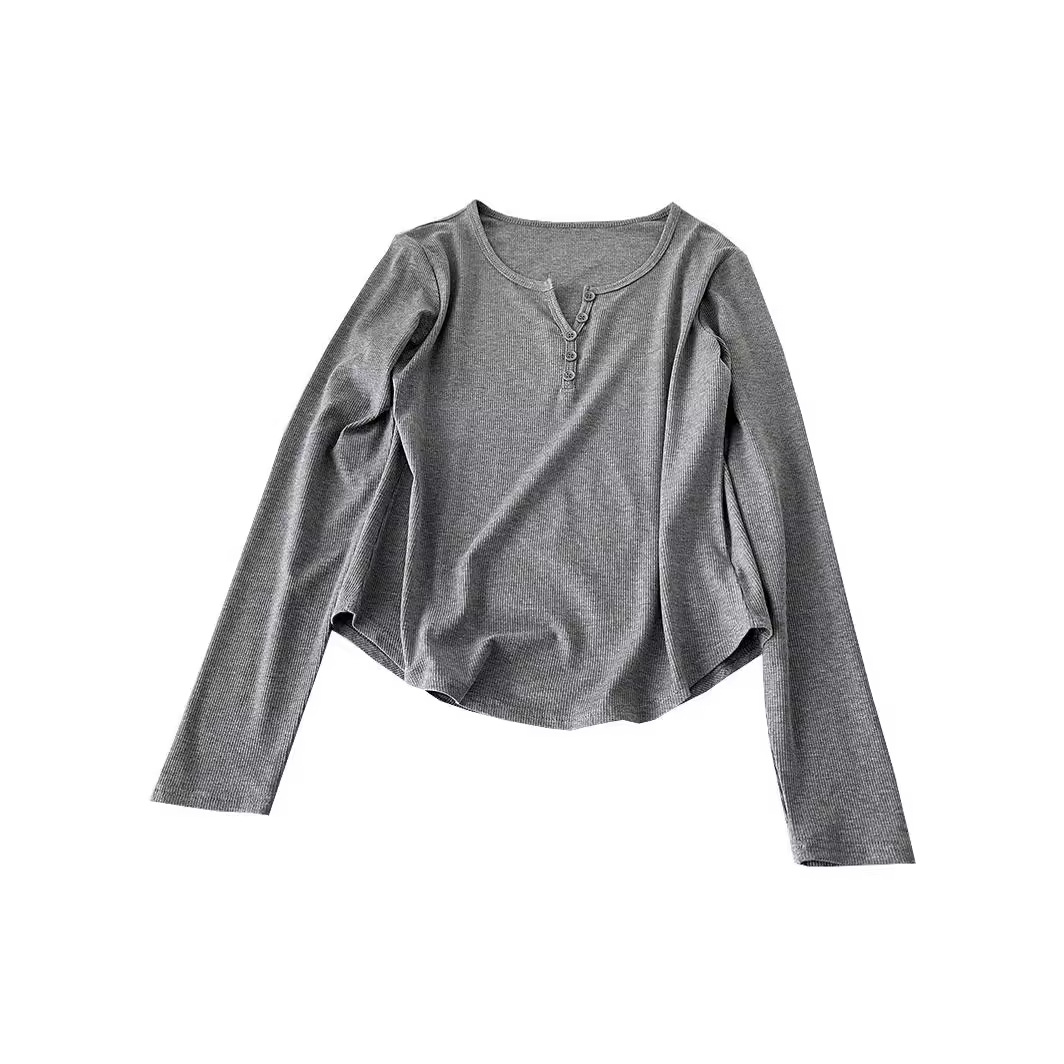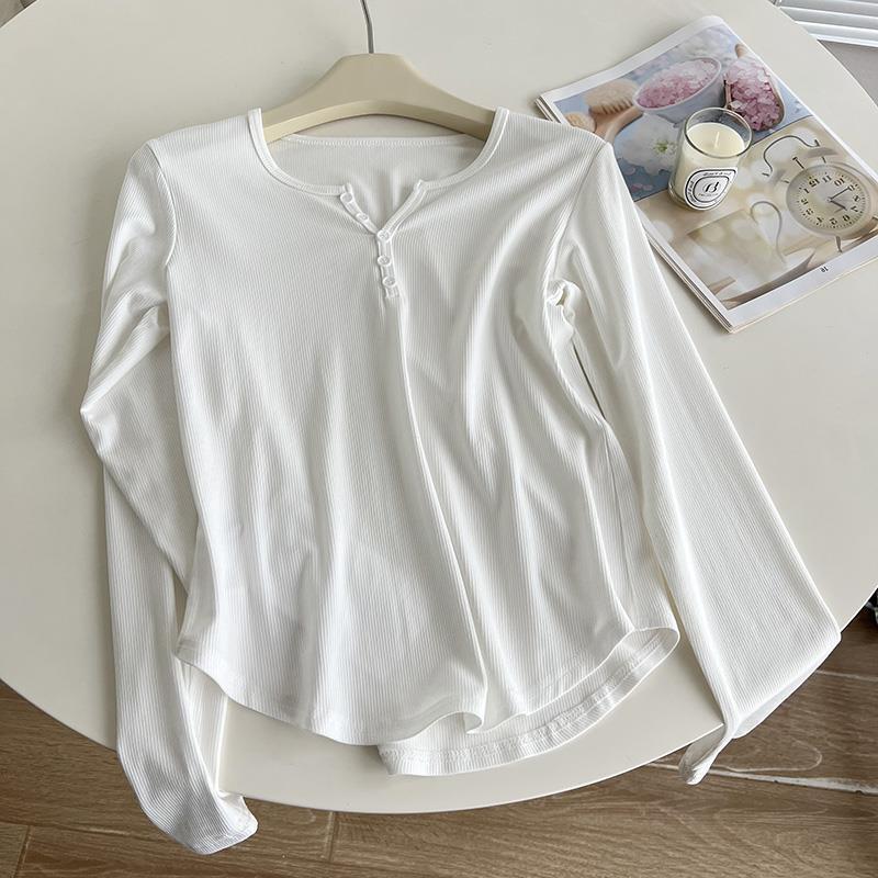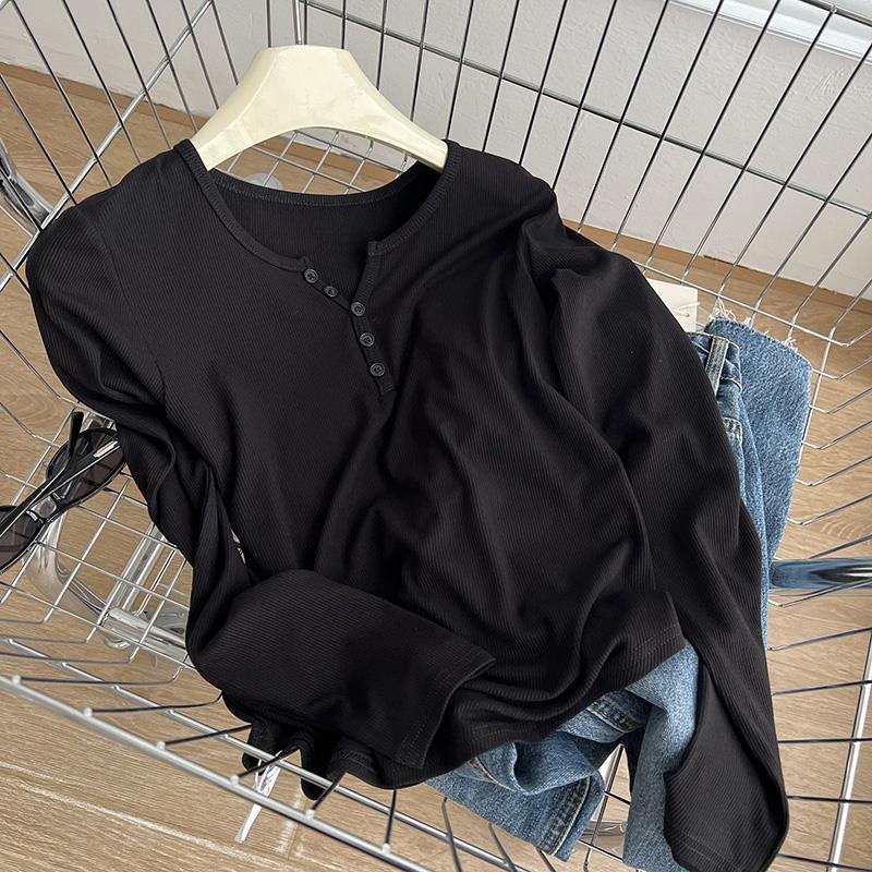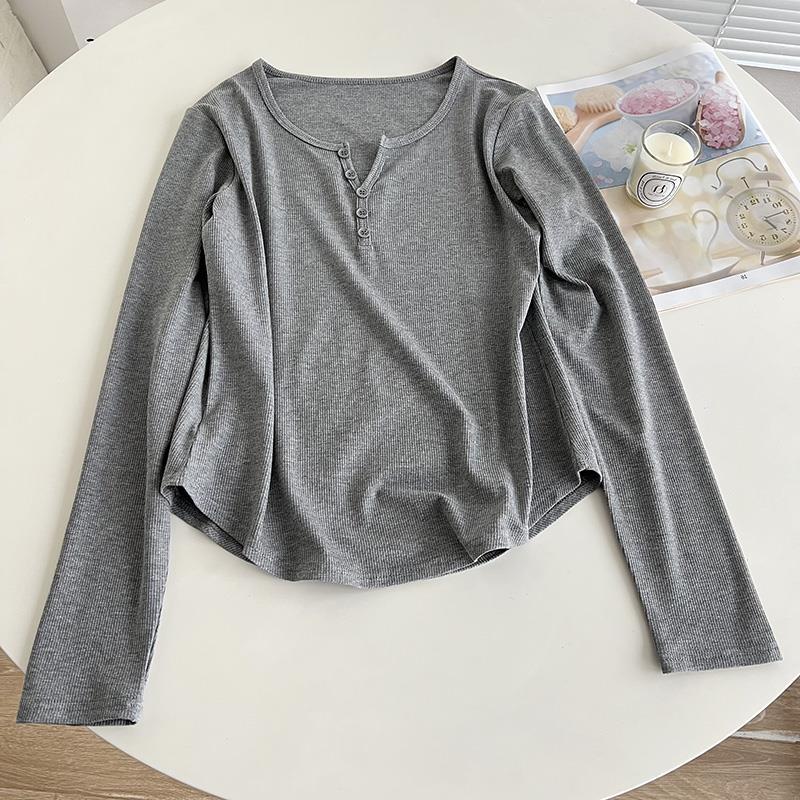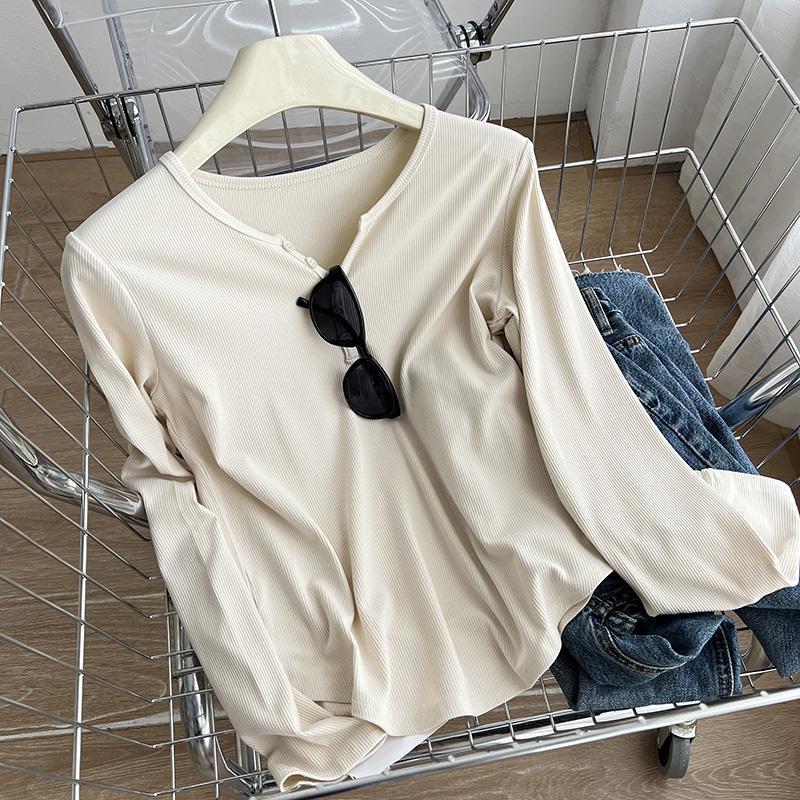 Главная страница > Нитки из хлопка на пуговицах V-образным вырезом с длинными рукавами женская осень 2023 НОВАЯ тонкая полоска для похудения