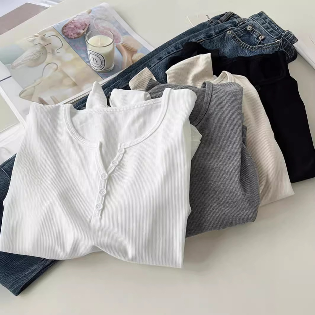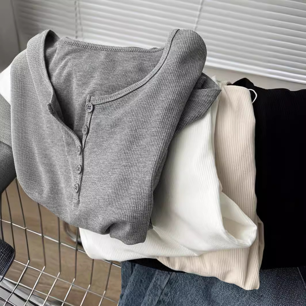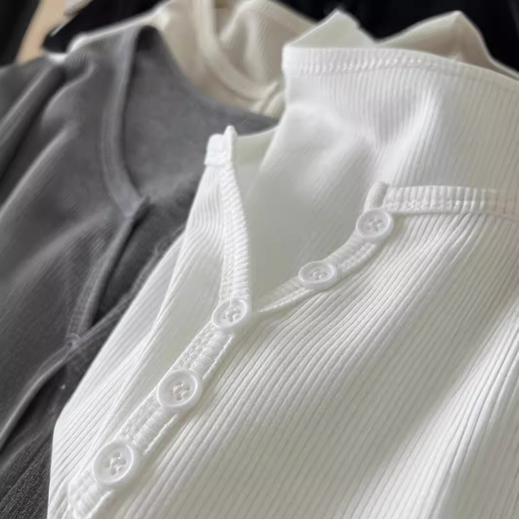 Нитки из хлопка на пуговицах V-образным вырезом с длинными рукавами женская осень 2023 НОВАЯ тонкая полоска для похудения