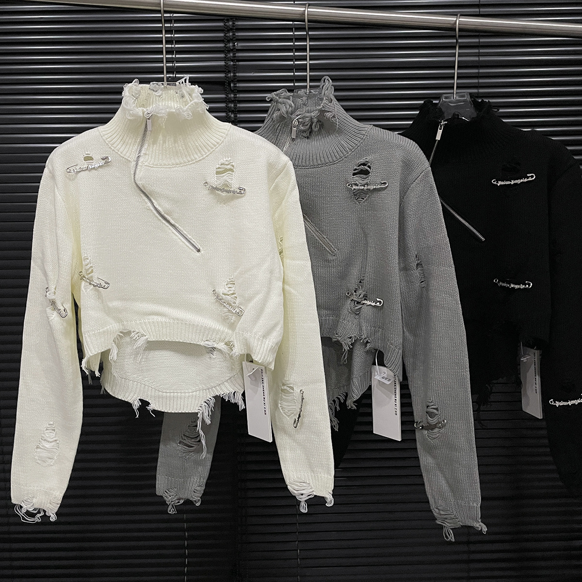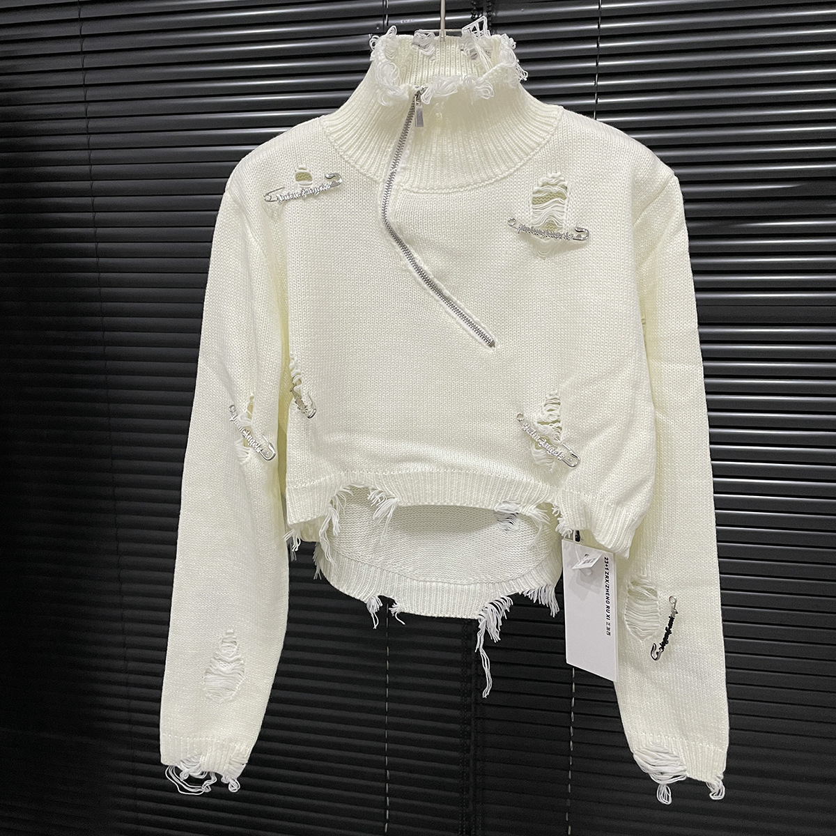 Главная страница > 24 Осенний короткий свитер с декором, женский американский нишевый маленький вязаный топ с высоким воротником